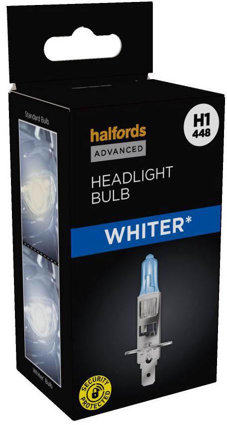 Halfords Advanced Whiter H1 448 Car Headlight Bulb, developed to ECE regulation 37.  The bulb is suitable for headlight or fog. It’s E-marked for road legal use in the UK and Europe.