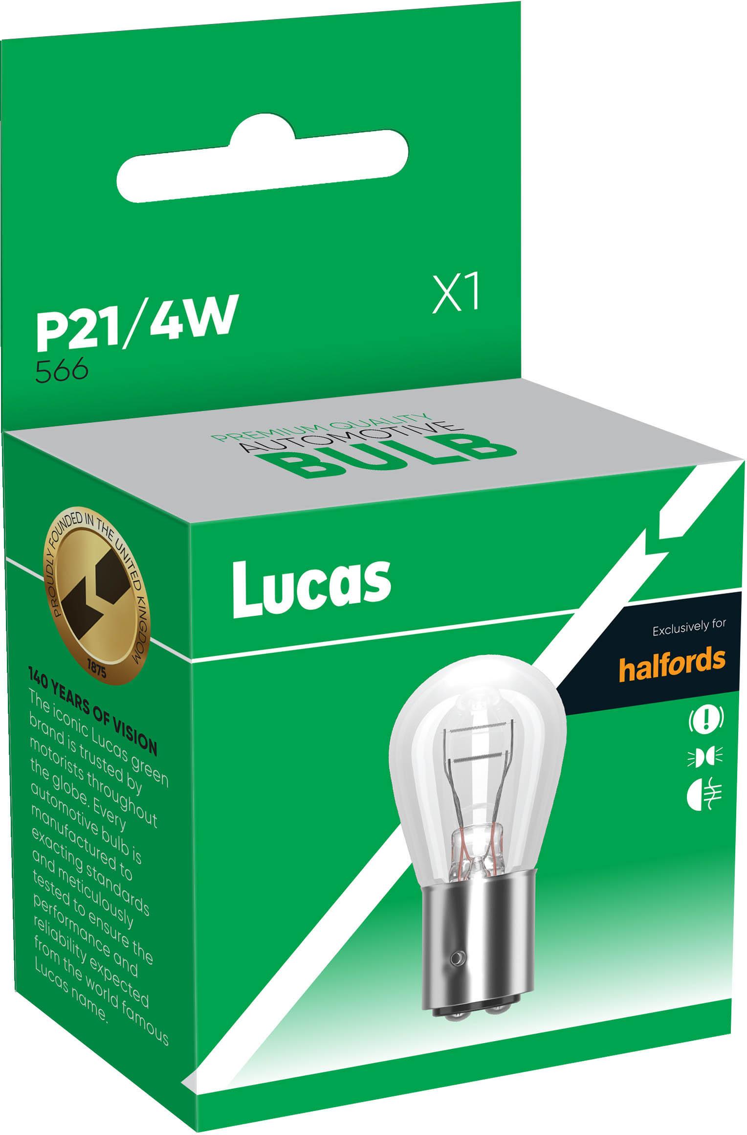 Manufactured to ECE regulation 37, the Lucas 566 P21/4W Car Bulb Single Pack delivers excellent performance from a globally recognised and trusted brand. The bulb is suitable for fog, brake and tail use. It’s E-marked for road legal use in the UK and Europe.
