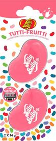 One 2-pack of Jelly Belly Duo Car Air Freshener Vent Clips in Tutti-Fruitti scent; use both car vent clips together to fill your vehicle with the scent of your favorite fruity sweet