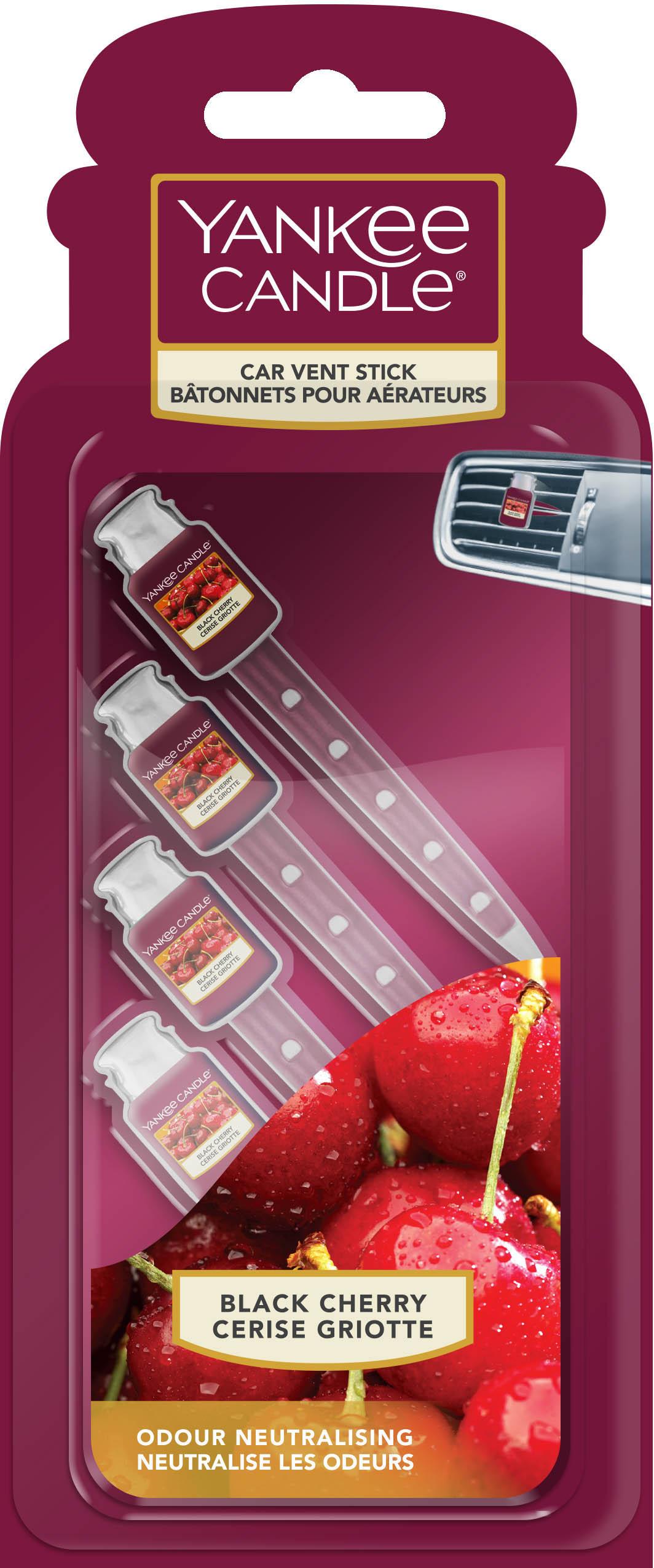 Yankee Candle Black Cherry is a fruity fragrance that absolutely captures the delicious sweetness of rich, ripe black cherries. Each vent stick provides continuous fragrance for up to two weeks. Pack of 4 Vent Sticks to freshens the air in vehicles.