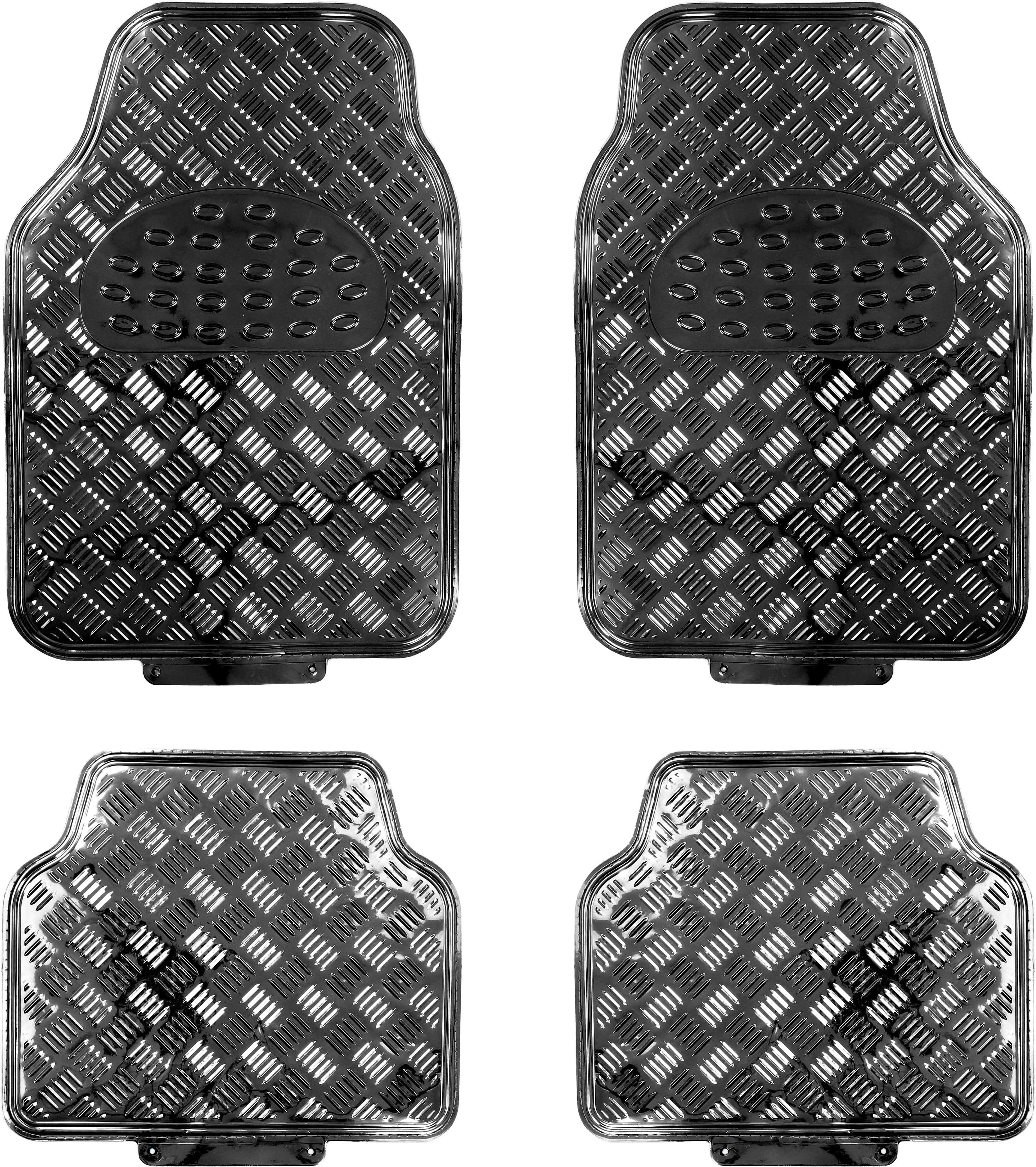 Streetwize 4 Piece Heavy Duty Metallic Check Plate Style Mat Set - Black