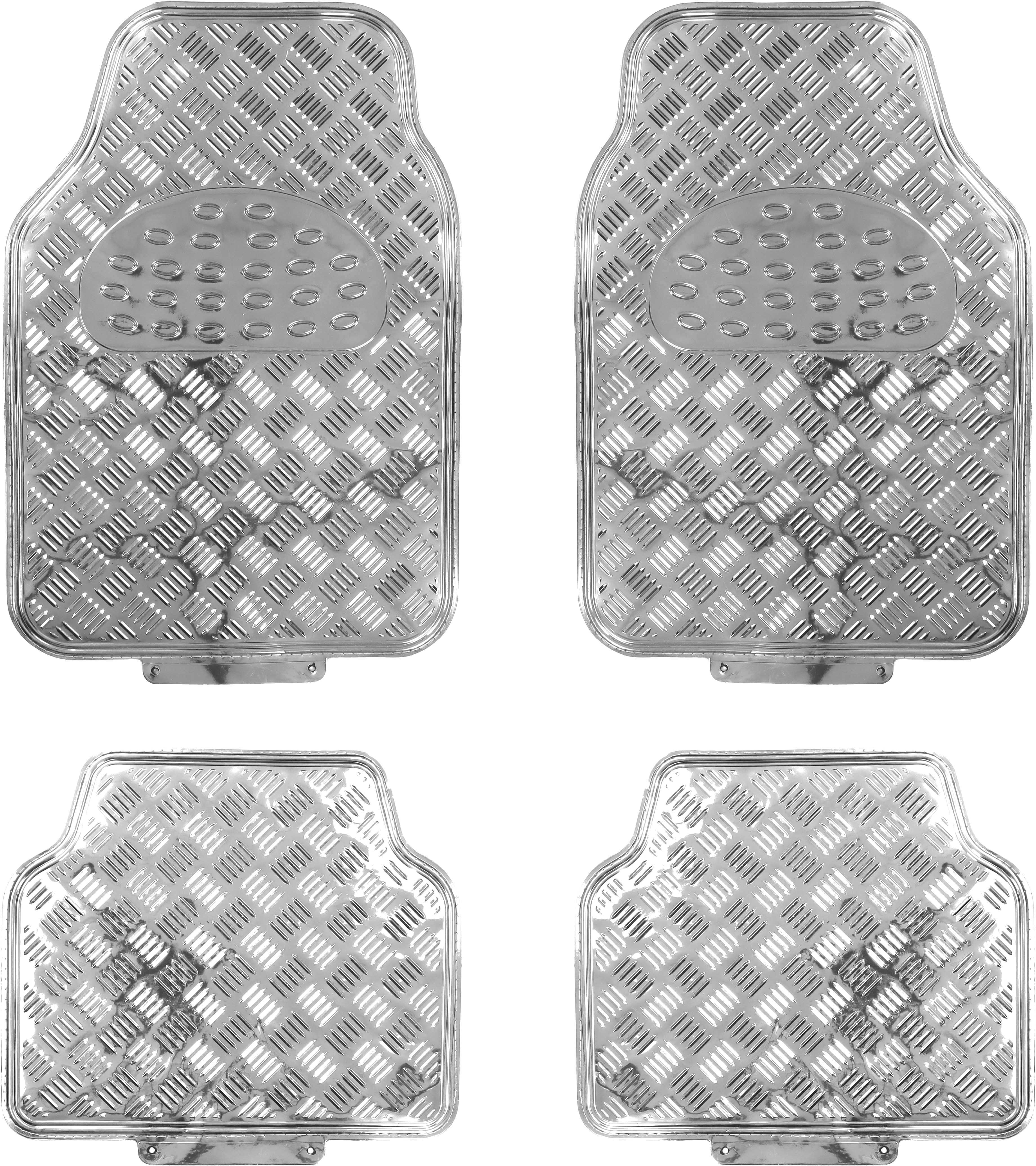 Streetwize 4 Piece Heavy Duty Metallic Check Plate Style Mat Set - Chrome