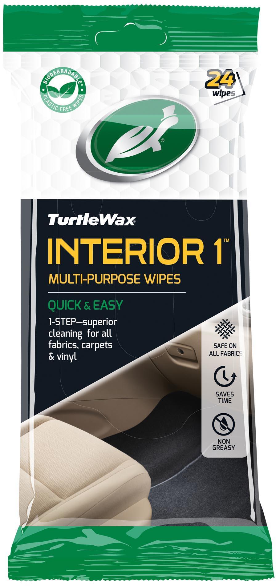 The Turtle Wax Interior 1 Multi-Purpose Cleaner Wipes are your one-step solution to dust, spills, and grime. Use them on fabrics and hard surfaces inside your car to tackle built-up dirt or handle accidents and spillages.