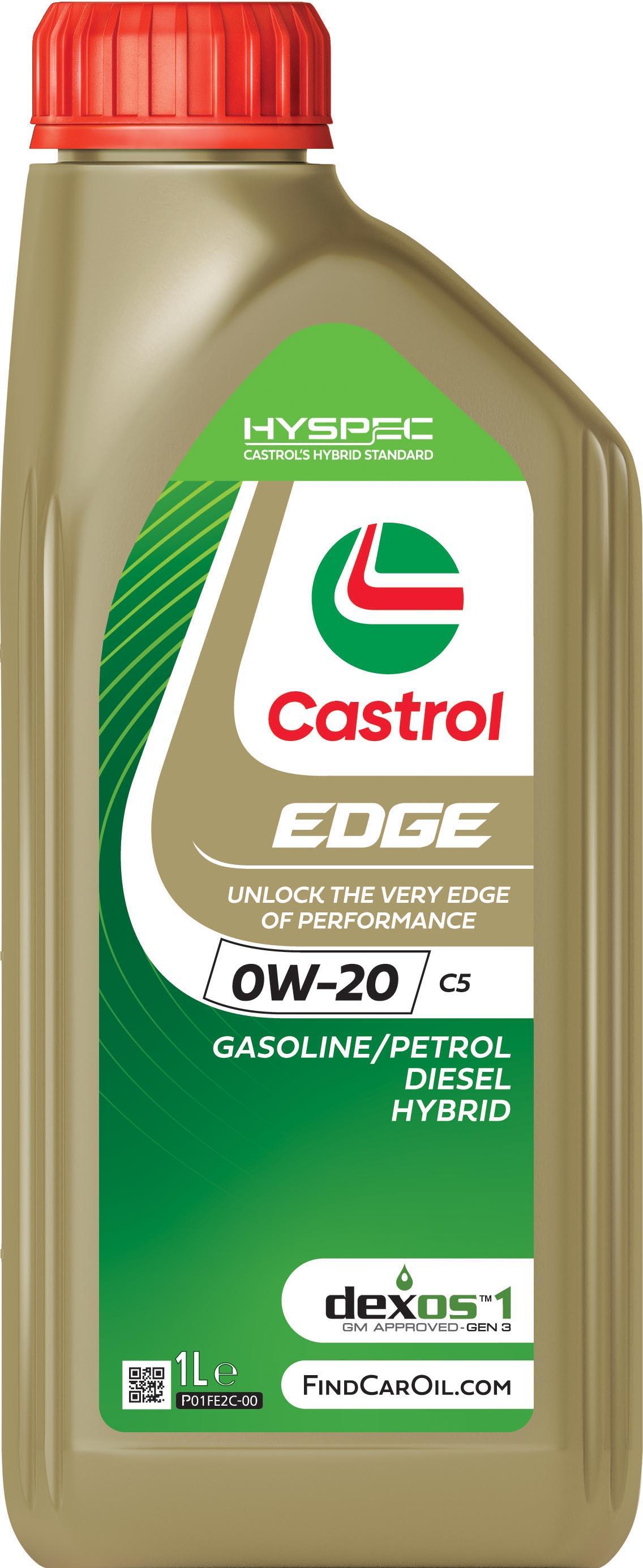 * Castrol EDGE: unlock the very edge of performance. * Greater power delivery for same amount of fuel used compared to 5W-40 baseline, demonstrated by engine testing for more than 80% of the Castrol EDGE portfolio in global sales volume in 2021. Application Castrol EDGE 0W-20 C5 is suitable for petrol, diesel and hybrid cars and designed to meet the latest specifications required by modern engines where the vehicle manufacturer recommends an ACEA C5, C6, API SP, ILSAC GF-6 or earlier specification 0W-20 lubricant. GM dexos1™ Approved-GEN 3