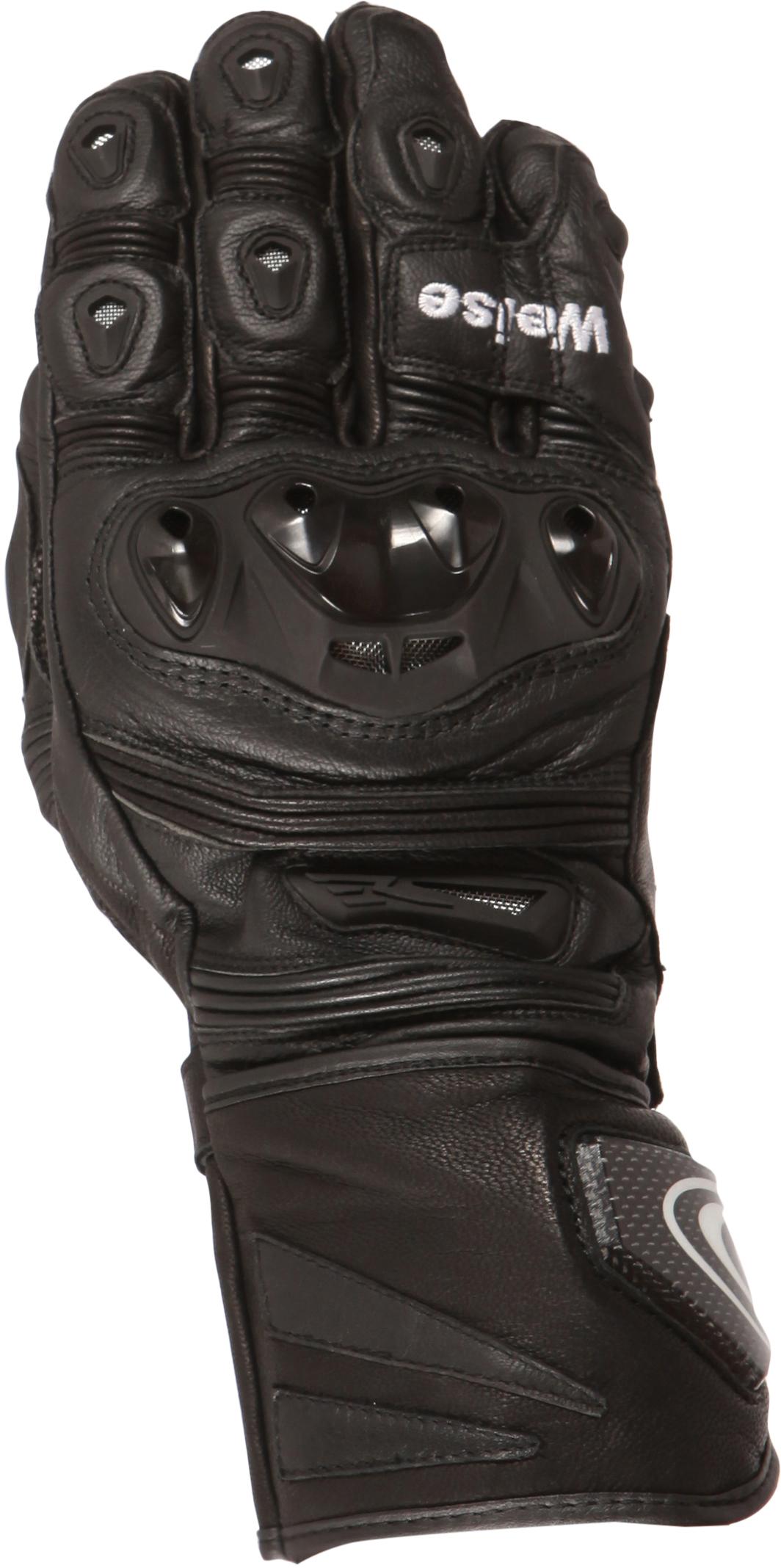 The Weise Lancer Gloves Black feature goat and nappa leather, and mcFIT technology fixture system with reinforced knuckle. The gloves offer twin leather on the palm, and leather brace to hold fingers together, as well as a leather panel over the wrist retaining strap. In addition, Weise offer 2-year no quibble guarantee.