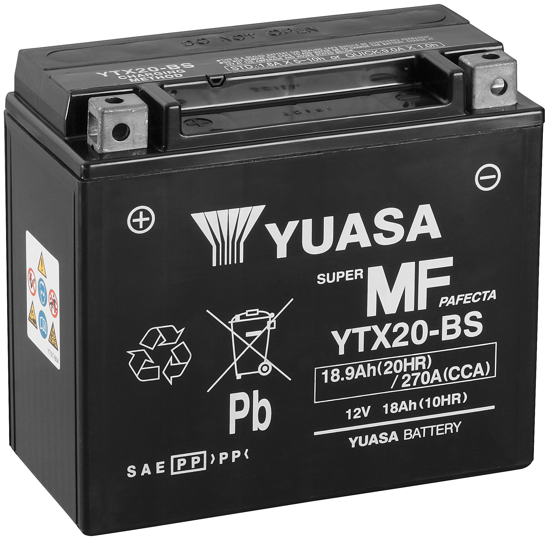 The Yuasa YTX20-BS 12V Maintenance Free VRLA Battery has a spill-proof design meaning there is virtually no possibility of leaks. This VRLA battery holds voltage longer while the advanced lead-calcium technology pumps up starting power, making this the ideal choice for motorcycles, scooters, ATVs, ride-on mowers and personal watercraft.