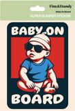 A fun baby-on-board sticker featuring a cool baby in sunglasses.