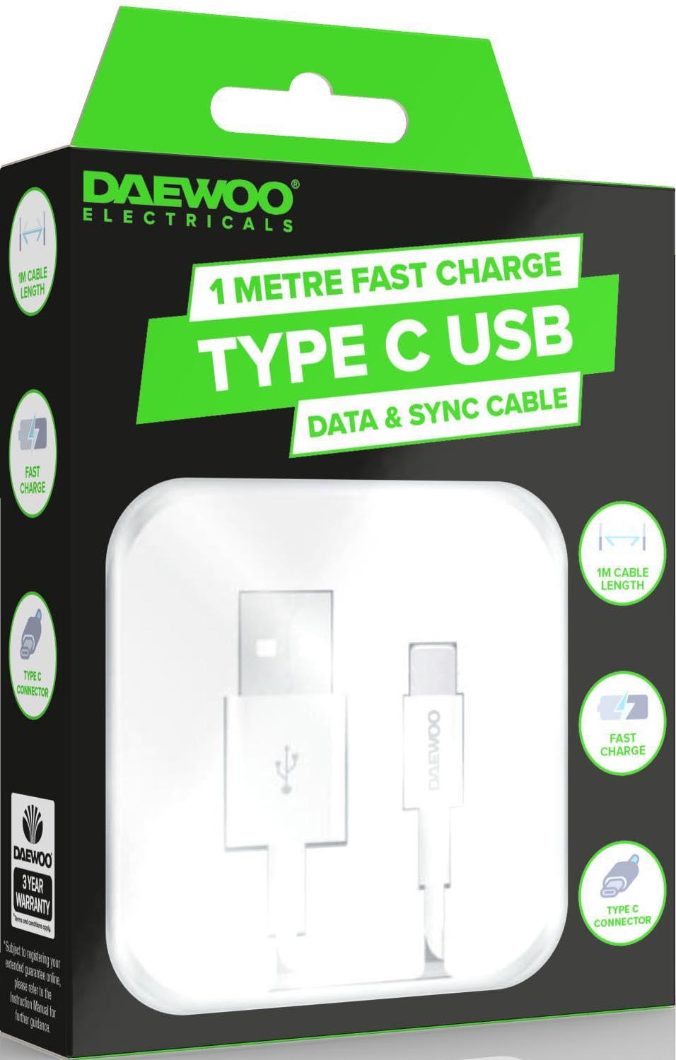 DAEWOO 1 METRE USB-A TO USB-C CABLE 2.1A FAST CHARGE