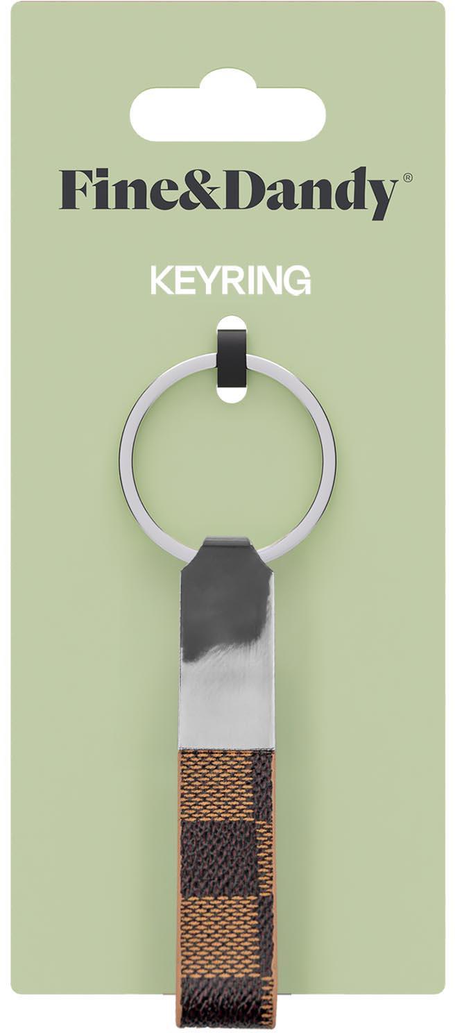 A compact and classic keyring from Fine & Dandy, featuring a brown checkerboard pattern for a subtle retro vibe.