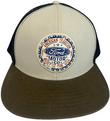 Official Ford Trucker Cap. Embroidered Ford Motor Co badge. Stone in colour, khaki peak, black mesh with black snapback fastening.