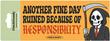 A sarcastic bumper sticker that says: 'Another Fine Day Ruined Because Of Responsibility'.