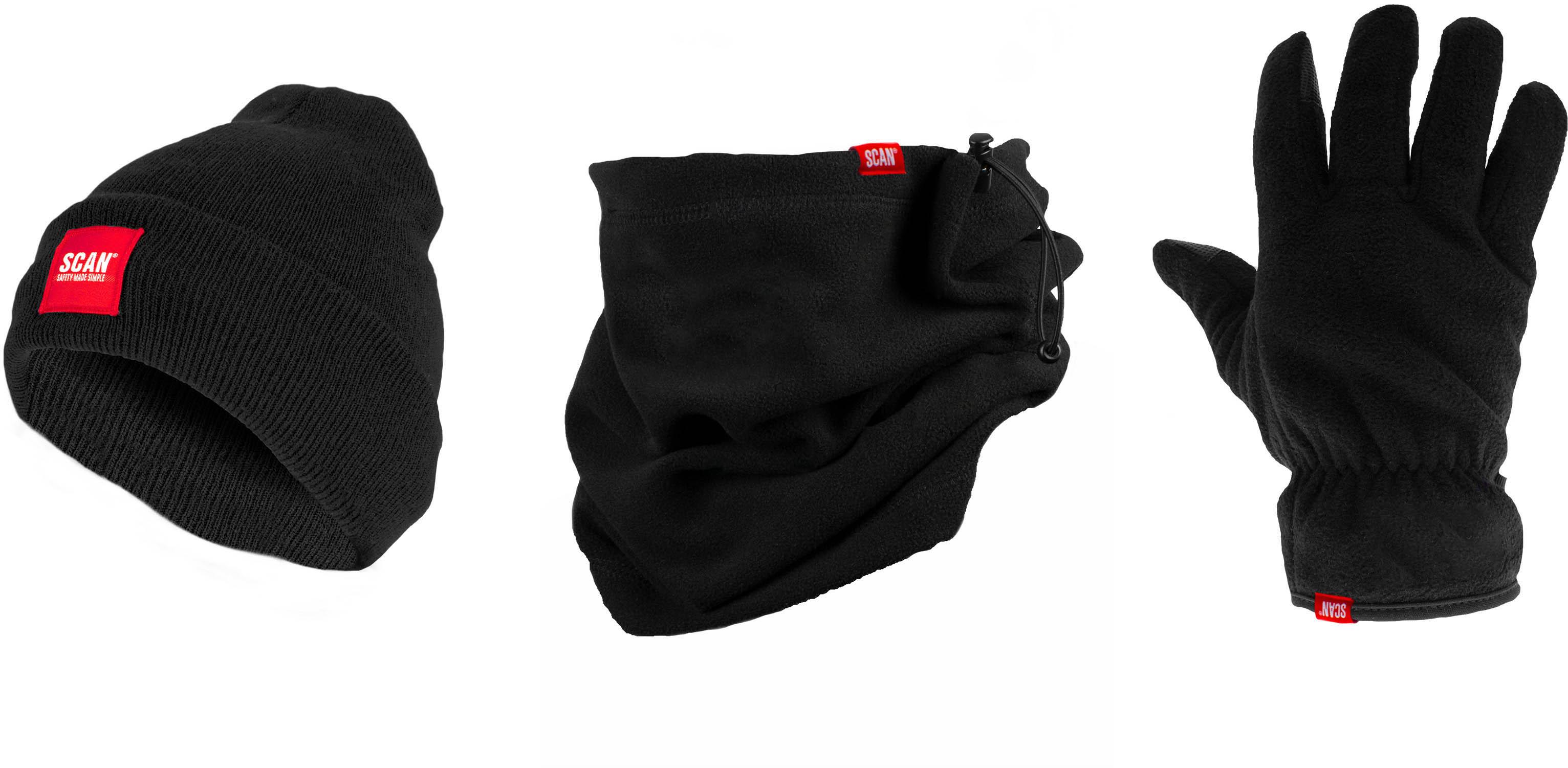 The Scan Winter Pack is the ideal choice for the cold months with a beanie, thick fleece gloves and a fleece snood.
