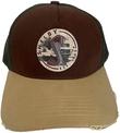 • Brown colour with stone distressed-edged peak and khaki mesh panels