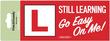 A reassuring bumper sticker: 'Still Learning Go Easy On Me'.