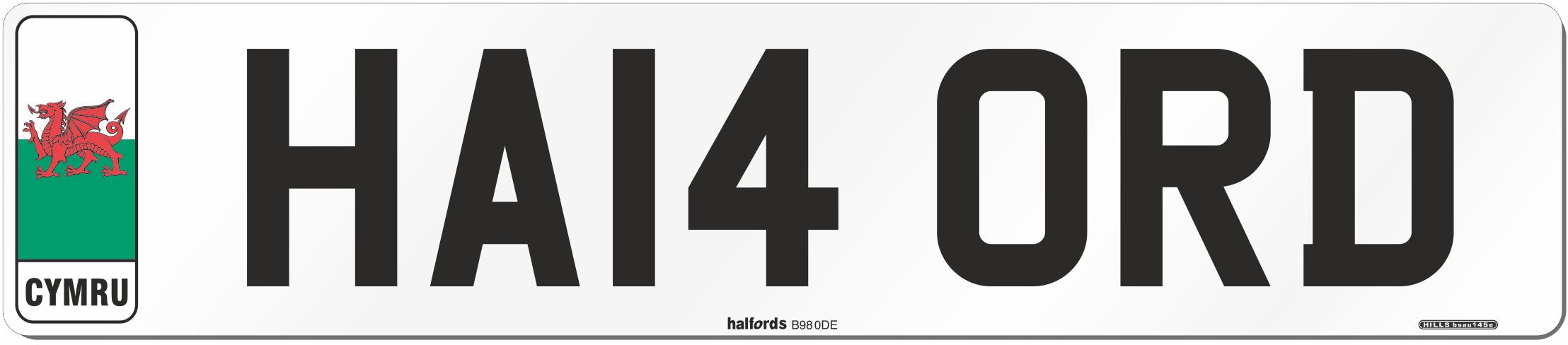 • Standard oblong front number plate with the Welsh Flag and lettering CYMRU