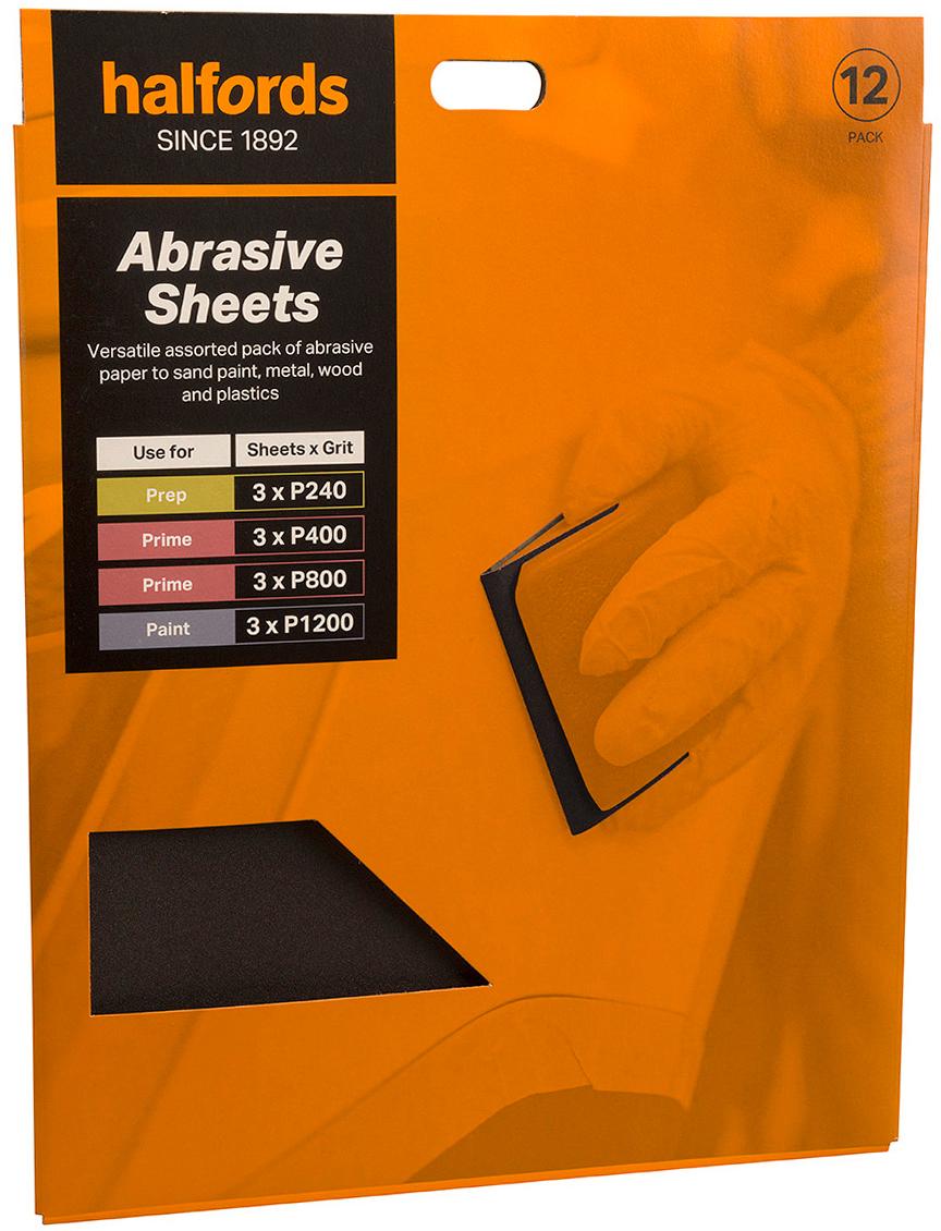 Containing 12 sheets of sandpaper, the Halfords Assorted Wet & Dry Sanding Paper 12 Sheets is perfect for a variety of jobs including car body repairs.