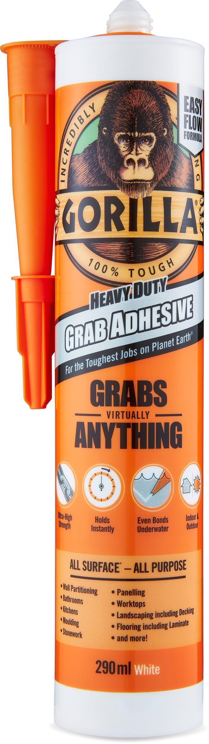 Gorilla Grab Adhesive is so versatile, it grabs virtually anything. The flexible, gap filling formula provides a heavy duty bond that’ll last.