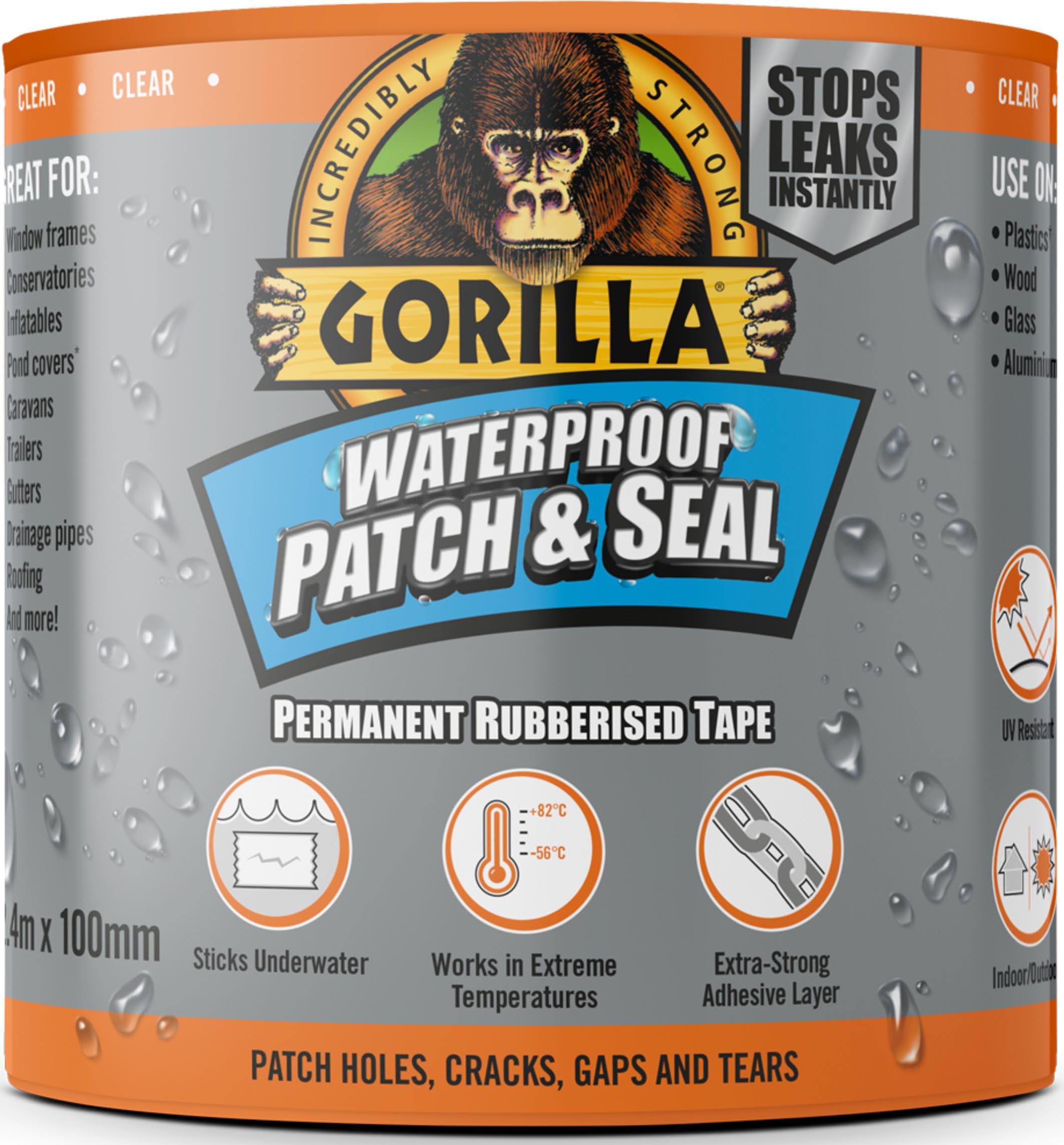 Suitable for hot, cold, wet and dry conditions, Gorilla Waterproof Patch & Seal Tape forms a permanent bond which is 100% waterproof and airtight.