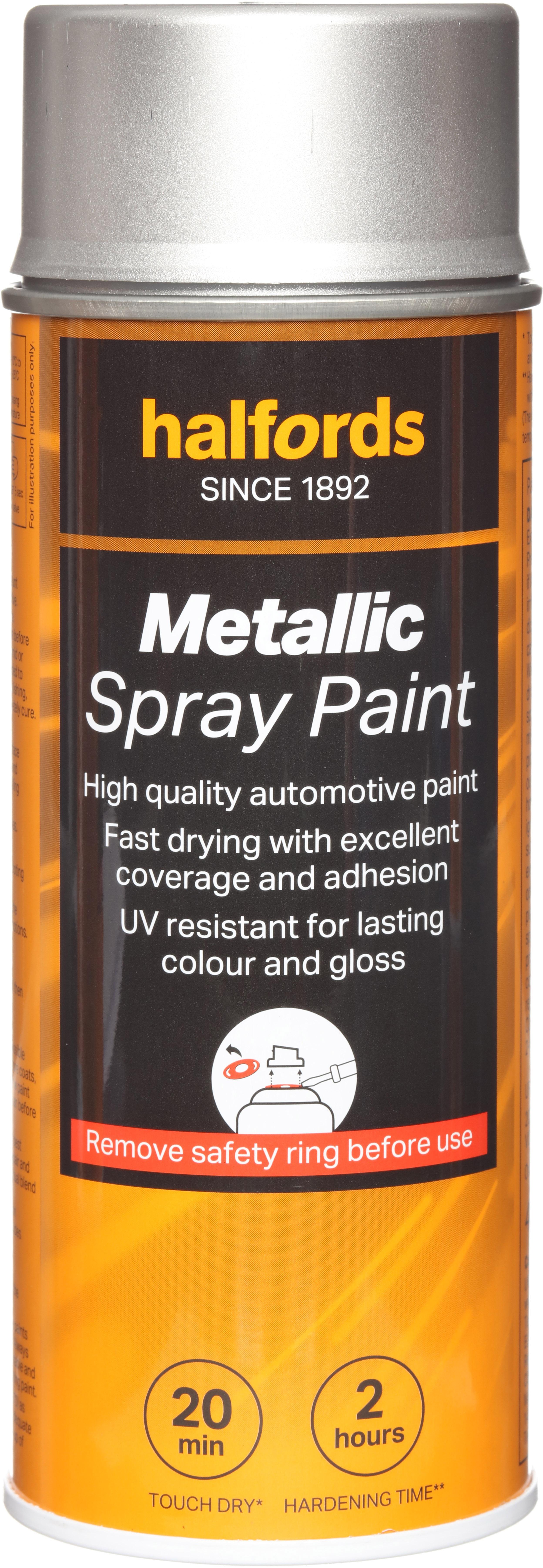The Halfords Silver Metallic Spray Paint is a multi-use automotive-grade spray paint, which can be safely used on surfaces like steel, aluminium, wood, stone, and most plastics with the right primer.