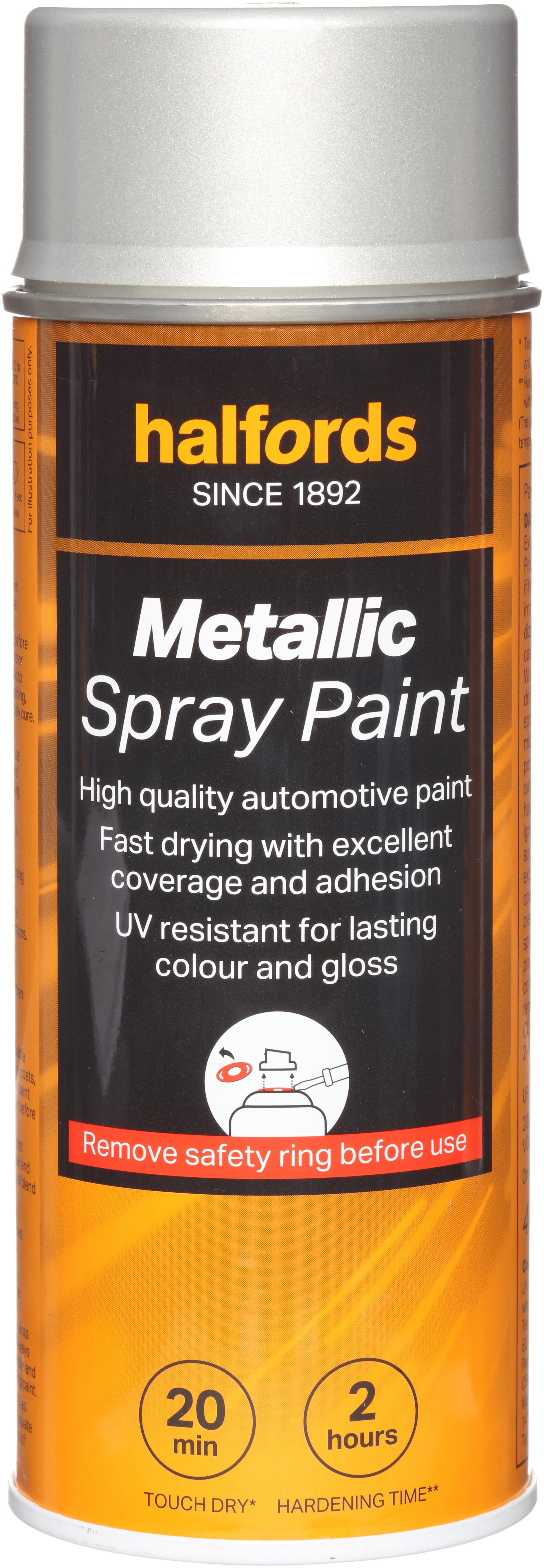 The Halfords Silver Metallic Spray Paint is a multi-use automotive-grade spray paint, which can be safely used on surfaces like steel, aluminium, wood, stone, and most plastics with the right primer.