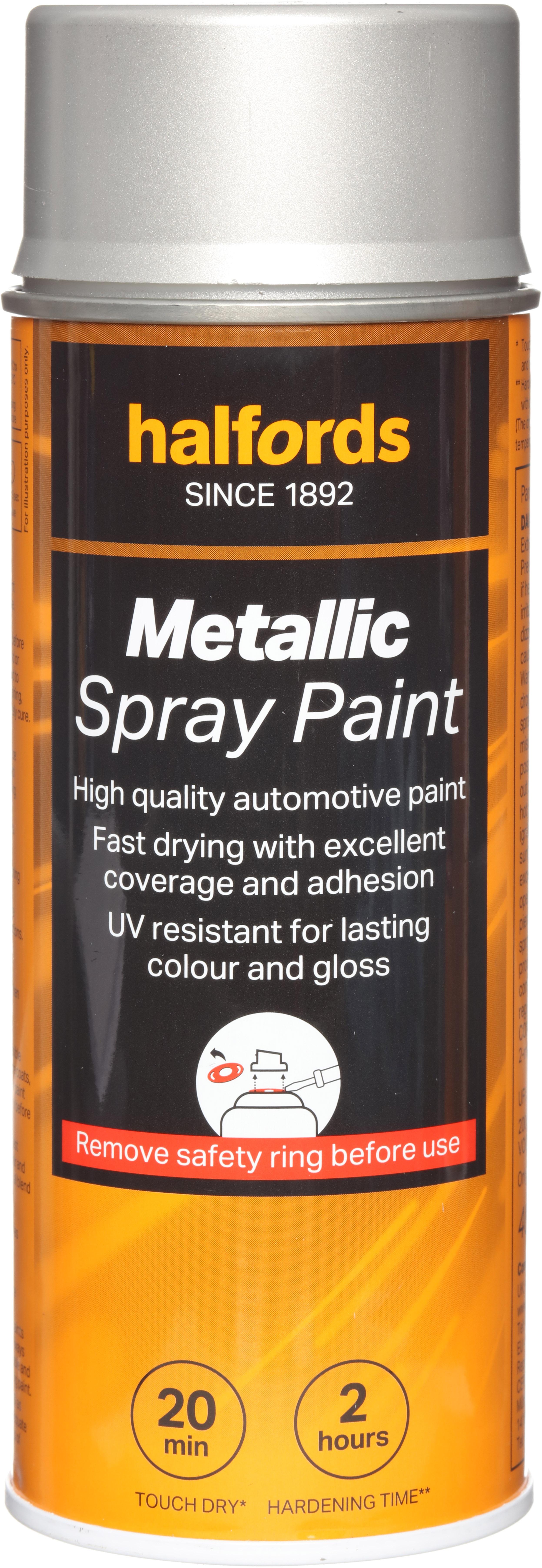 The Halfords Silver Metallic Spray Paint is a multi-use automotive-grade spray paint, which can be safely used on surfaces like steel, aluminium, wood, stone, and most plastics with the right primer.