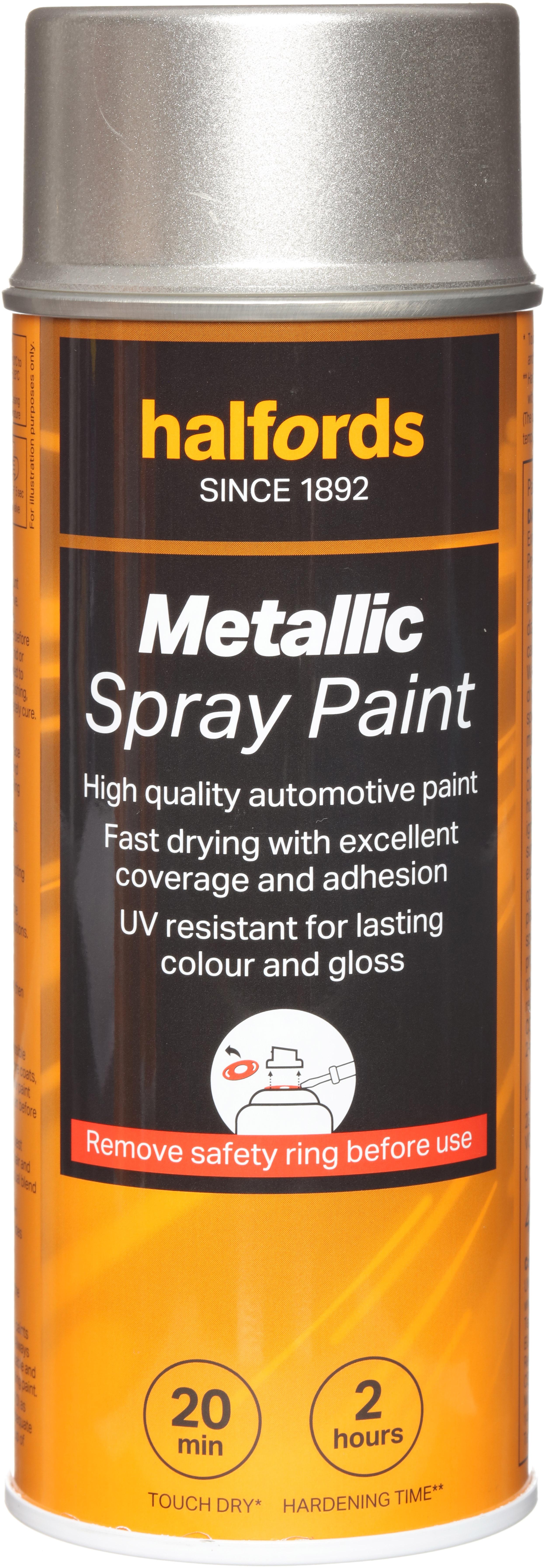 The Halfords Silver Metallic Spray Paint is a multi-use automotive-grade spray paint, which can be safely used on surfaces like steel, aluminium, wood, stone, and most plastics with the right primer.