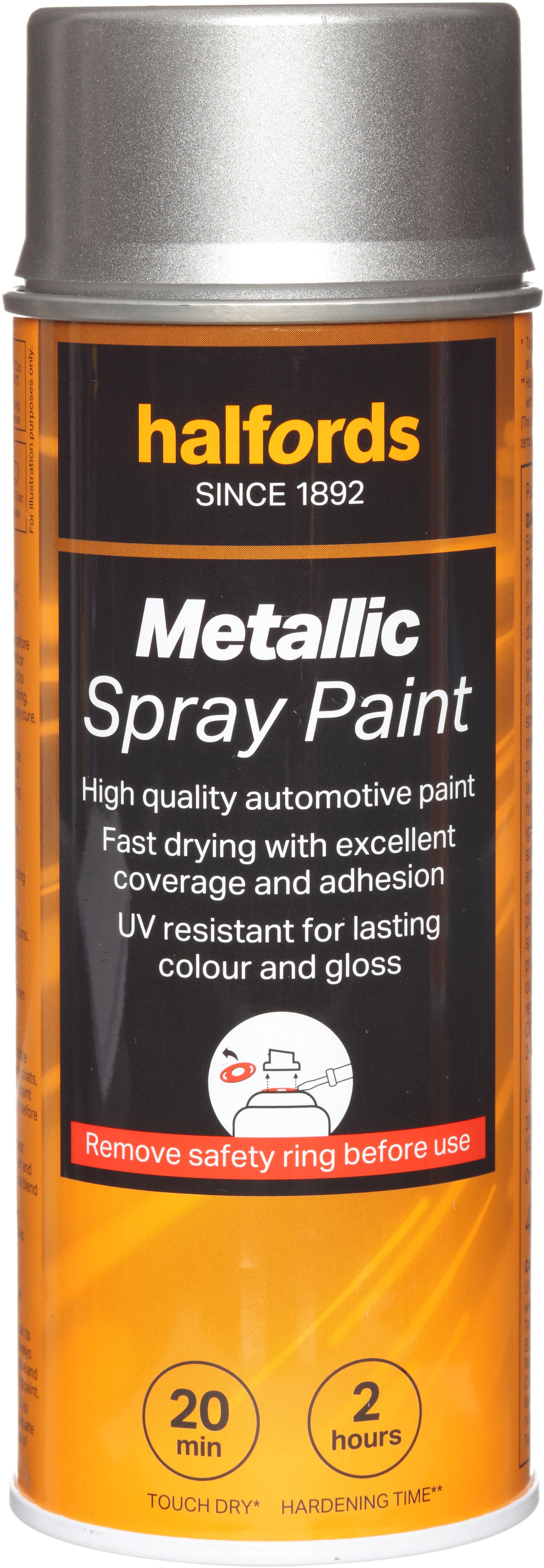 The Halfords Silver Metallic Spray Paint is a multi-use automotive-grade spray paint, which can be safely used on surfaces like steel, aluminium, wood, stone, and most plastics with the right primer.