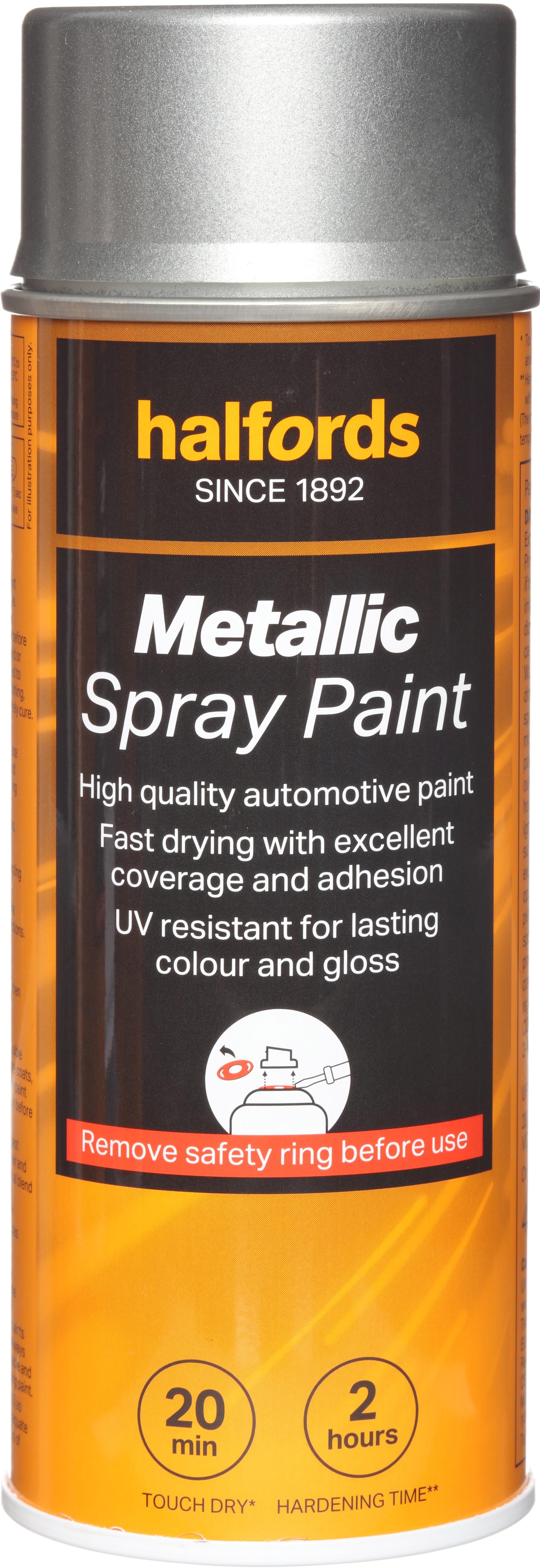 The Halfords Silver Metallic Spray Paint is a multi-use automotive-grade spray paint, which can be safely used on surfaces like steel, aluminium, wood, stone, and most plastics with the right primer.