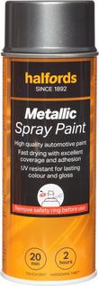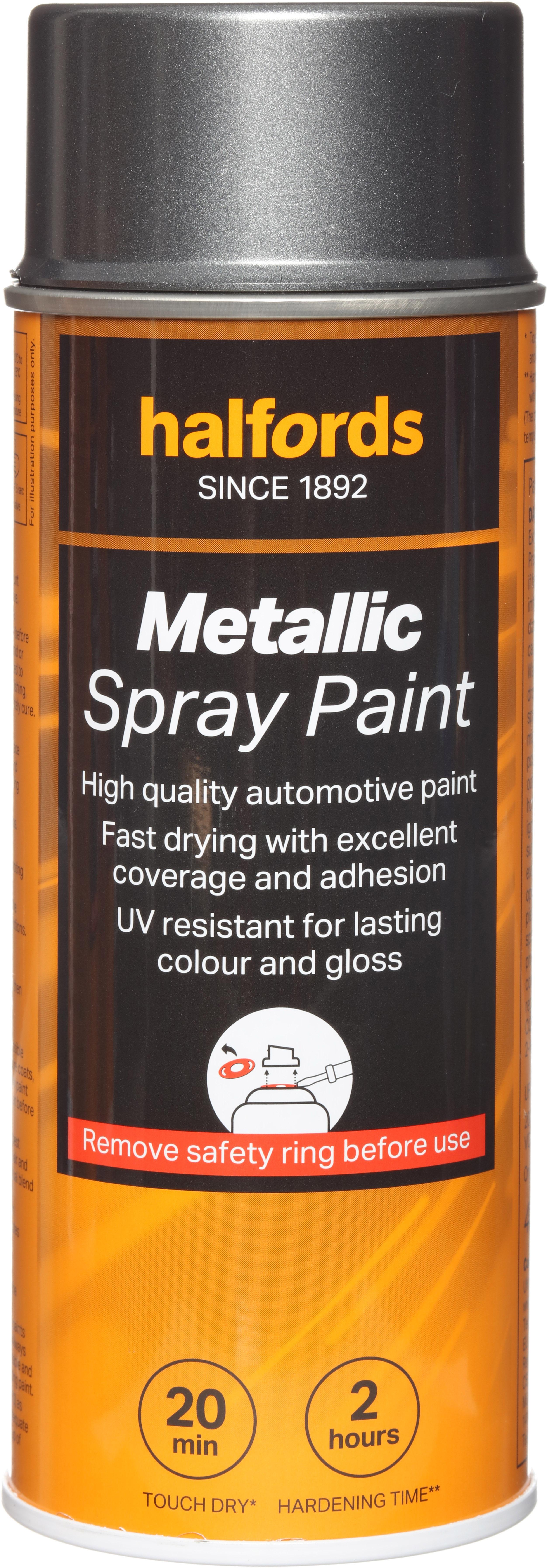 The Halfords Grey Metallic Spray Paint is an automotive-grade spray paint. It’s acrylic-based, and can be used on almost all vehicle finishes as well as steel, aluminium, most plastics, wood & stone.