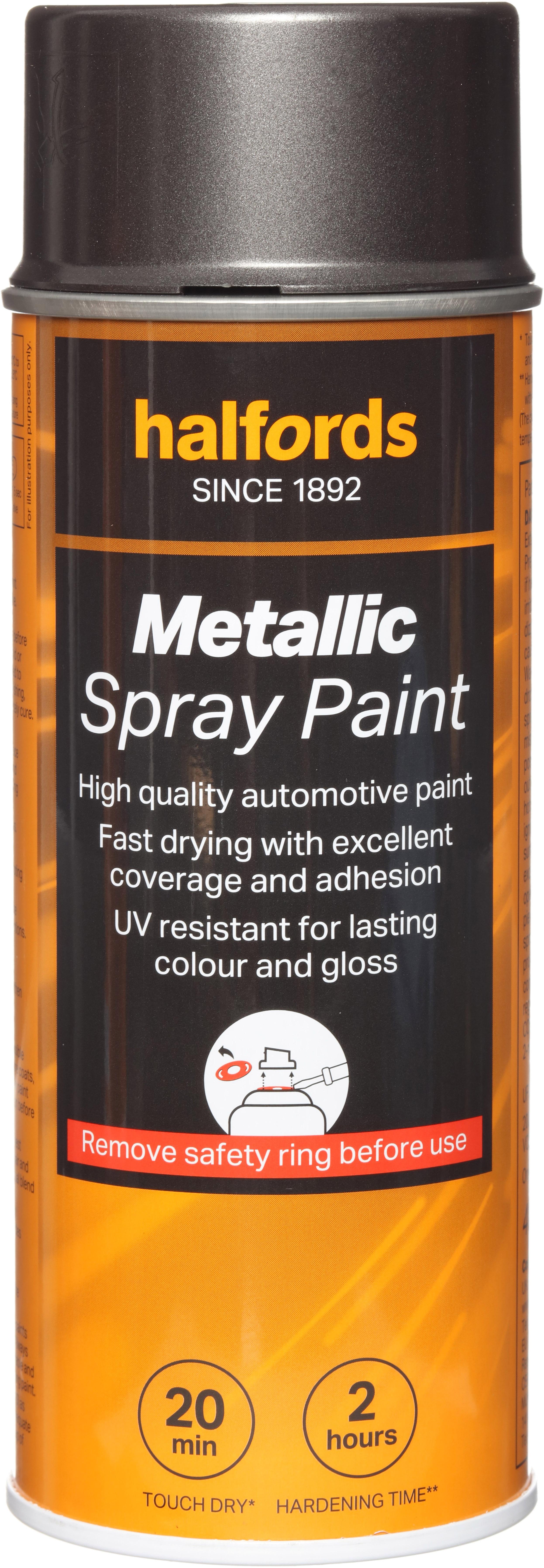 The Halfords Grey Metallic Spray Paint is an automotive-grade spray paint. It’s acrylic-based, and can be used on almost all vehicle finishes as well as steel, aluminium, most plastics, wood & stone.