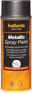 The Halfords Grey Metallic Spray Paint is an automotive-grade spray paint. It’s acrylic-based, and can be used on almost all vehicle finishes as well as steel, aluminium, most plastics, wood & stone.