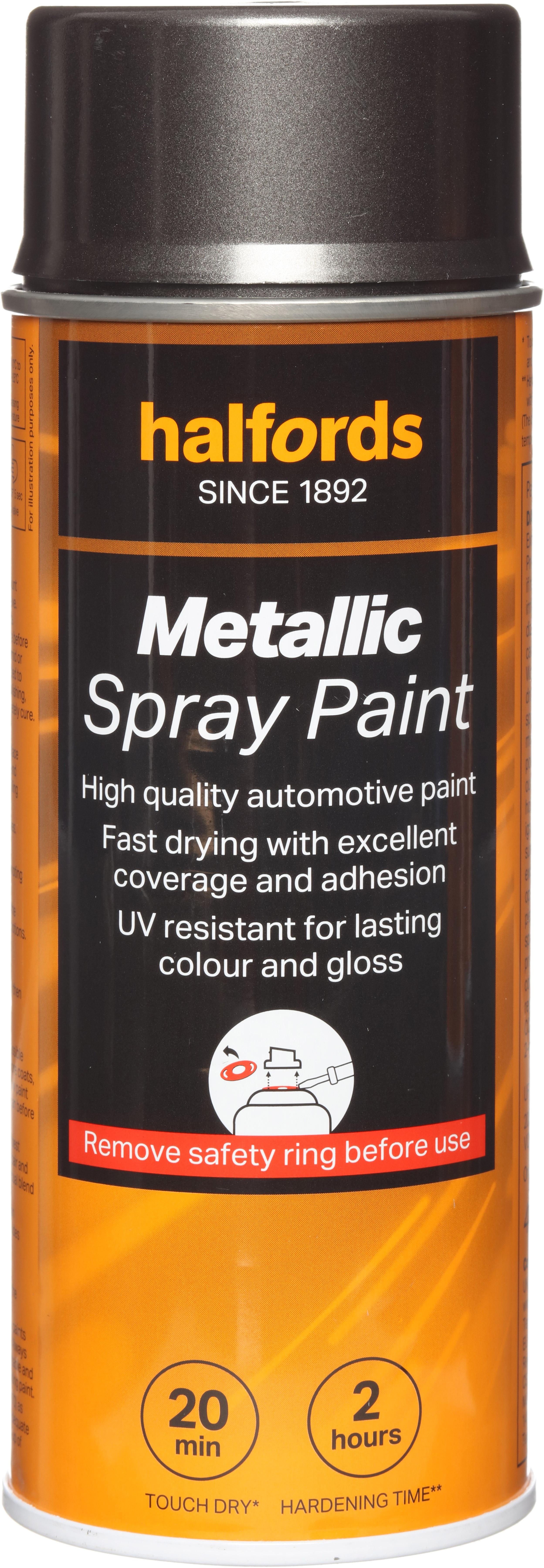 The Halfords Grey Metallic Spray Paint is an automotive-grade spray paint. It’s acrylic-based, and can be used on almost all vehicle finishes as well as steel, aluminium, most plastics, wood & stone.