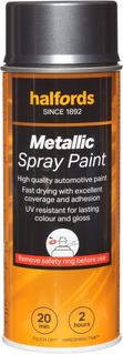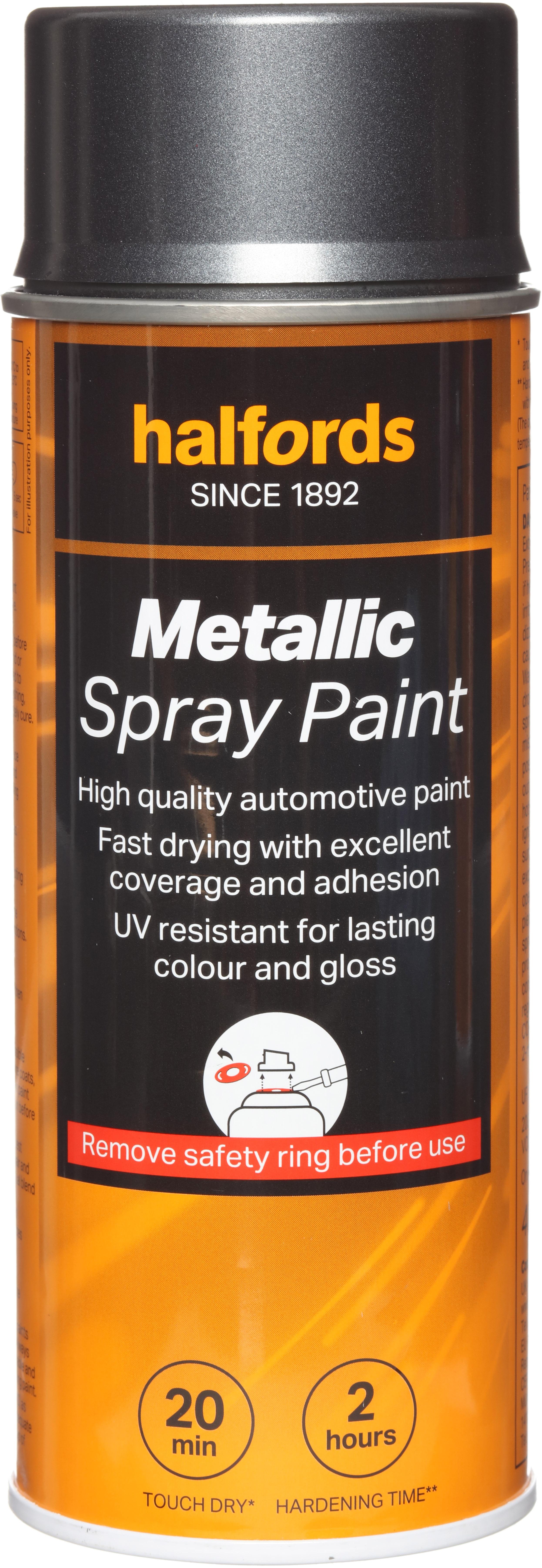 The Halfords Grey Metallic Spray Paint is an automotive-grade spray paint. It’s acrylic-based, and can be used on almost all vehicle finishes as well as steel, aluminium, most plastics, wood & stone.