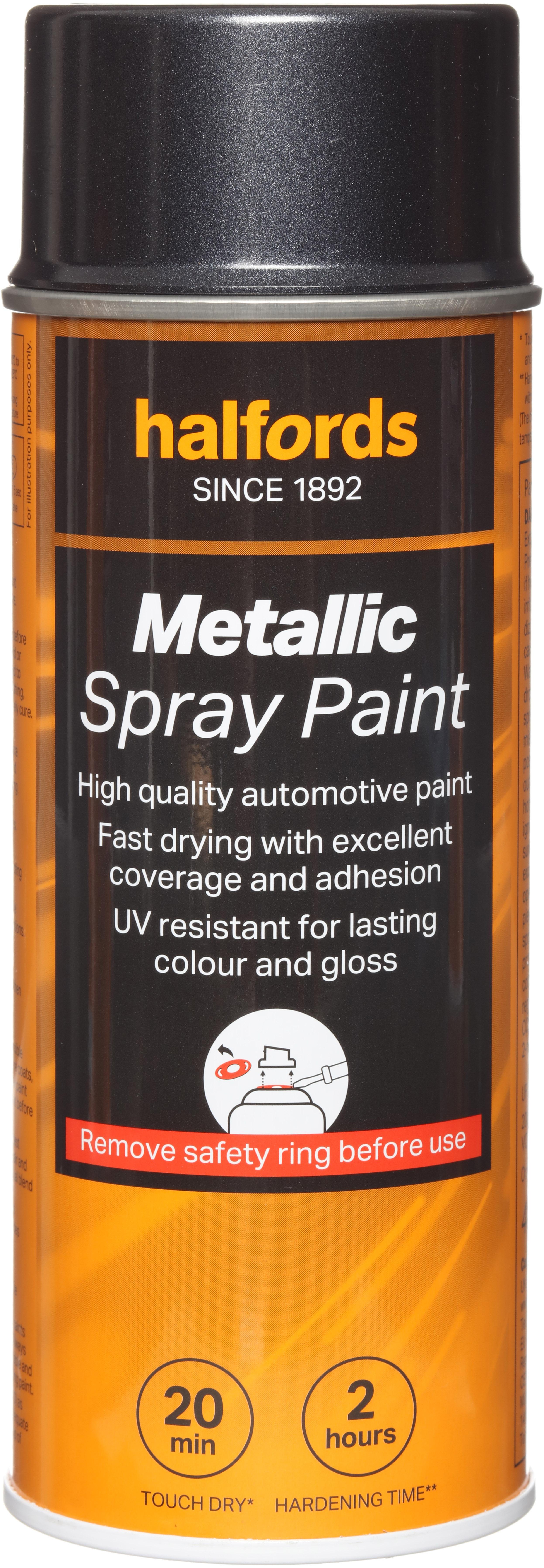 The Halfords Grey Metallic Spray Paint is an automotive-grade spray paint. It’s acrylic-based, and can be used on almost all vehicle finishes as well as steel, aluminium, most plastics, wood & stone.