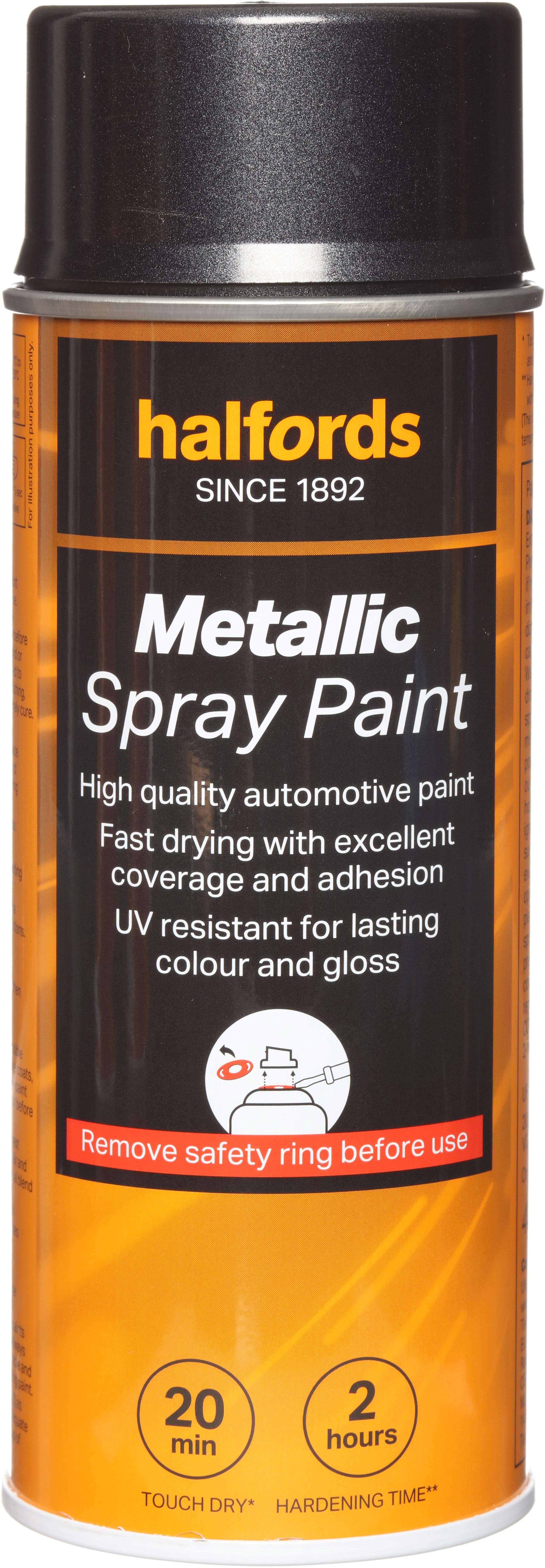 The Halfords Grey Metallic Spray Paint is an automotive-grade spray paint. It’s acrylic-based, and can be used on almost all vehicle finishes as well as steel, aluminium, most plastics, wood & stone.