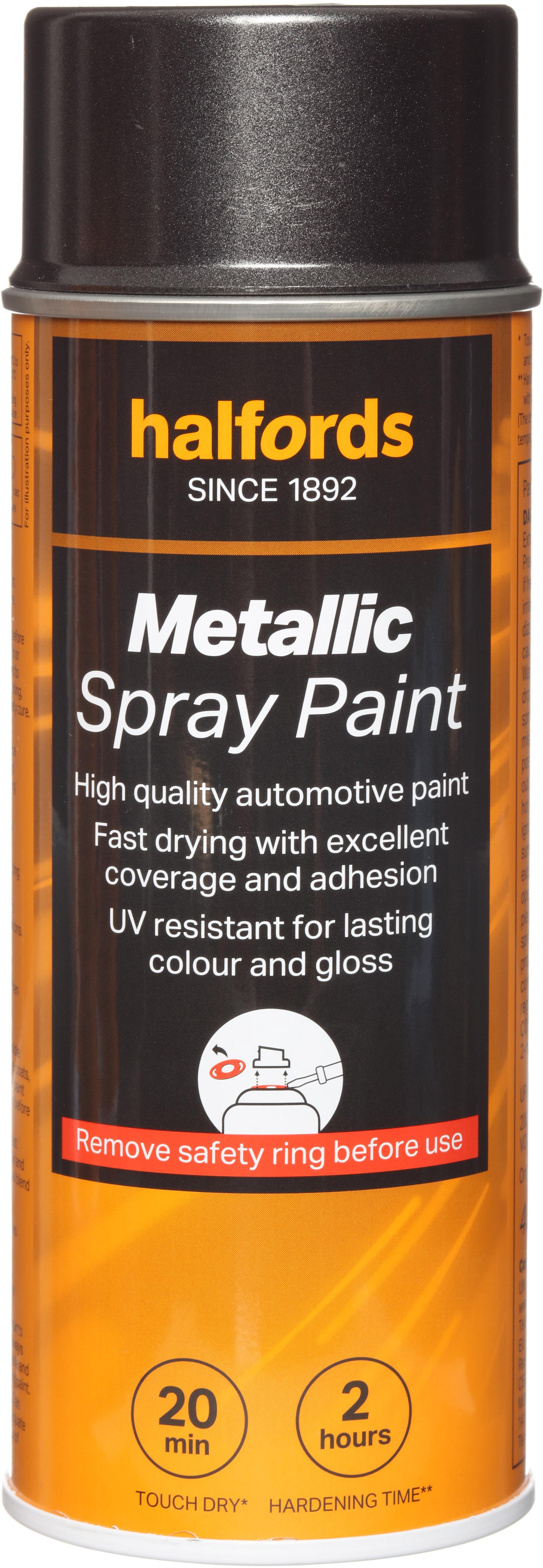 The Halfords Grey Metallic Spray Paint is an automotive-grade spray paint. It’s acrylic-based, and can be used on almost all vehicle finishes as well as steel, aluminium, most plastics, wood & stone.