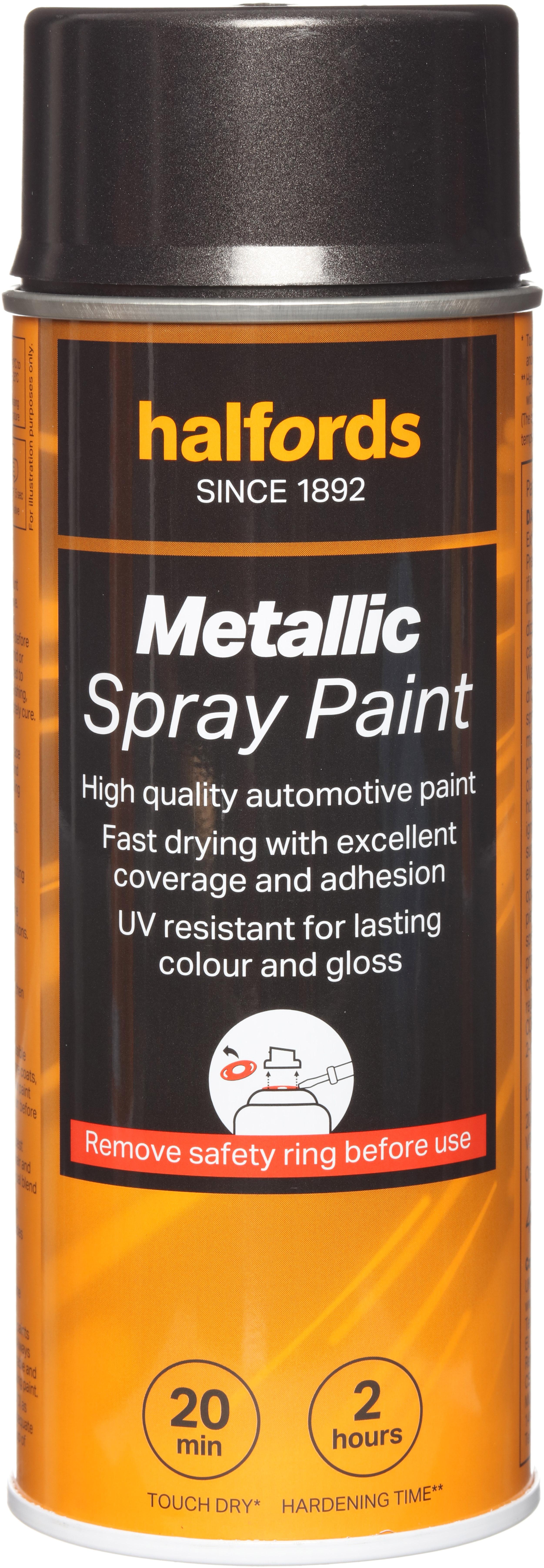 The Halfords Grey Metallic Spray Paint is an automotive-grade spray paint. It’s acrylic-based, and can be used on almost all vehicle finishes as well as steel, aluminium, most plastics, wood & stone.