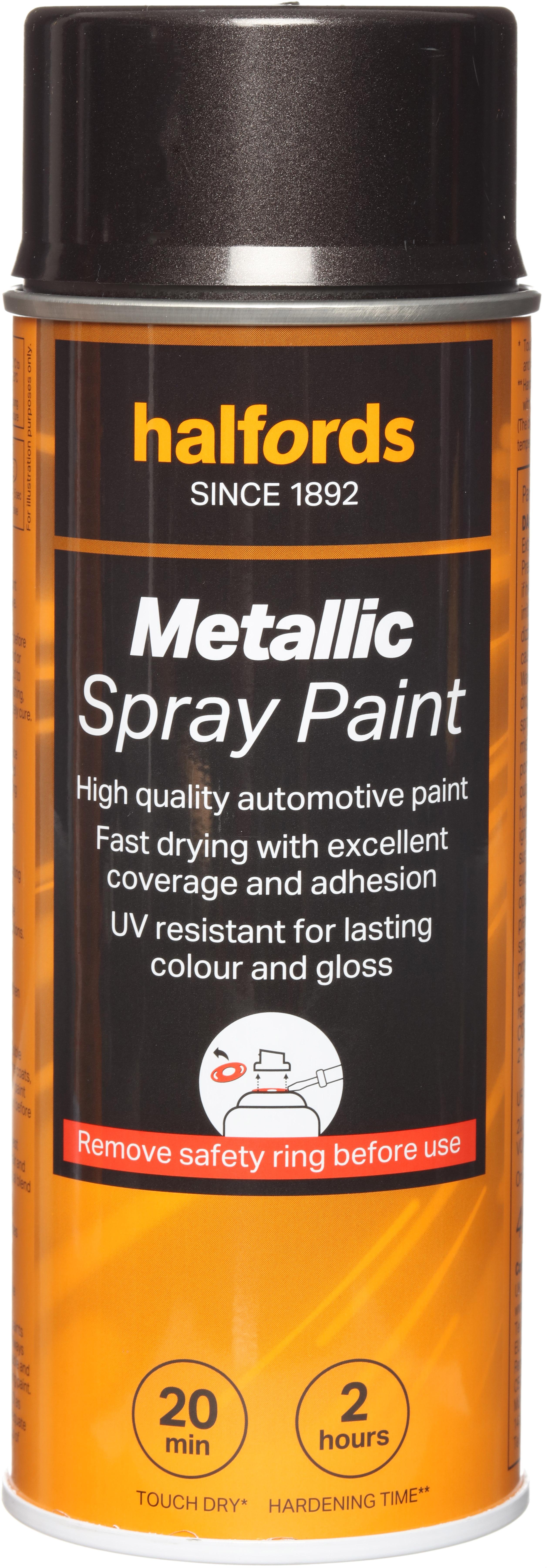 The Halfords Black Metallic Spray Paint is an acrylic-based spray paint, perfect for repairing damage and respraying car panels. It can also be used on aluminium, steel, wood, stone, and most plastics with an appropriate primer.
