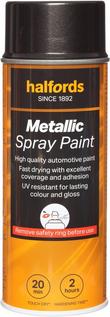 The Halfords Black Metallic Spray Paint is an acrylic-based spray paint, perfect for repairing damage and respraying car panels. It can also be used on aluminium, steel, wood, stone, and most plastics with an appropriate primer.