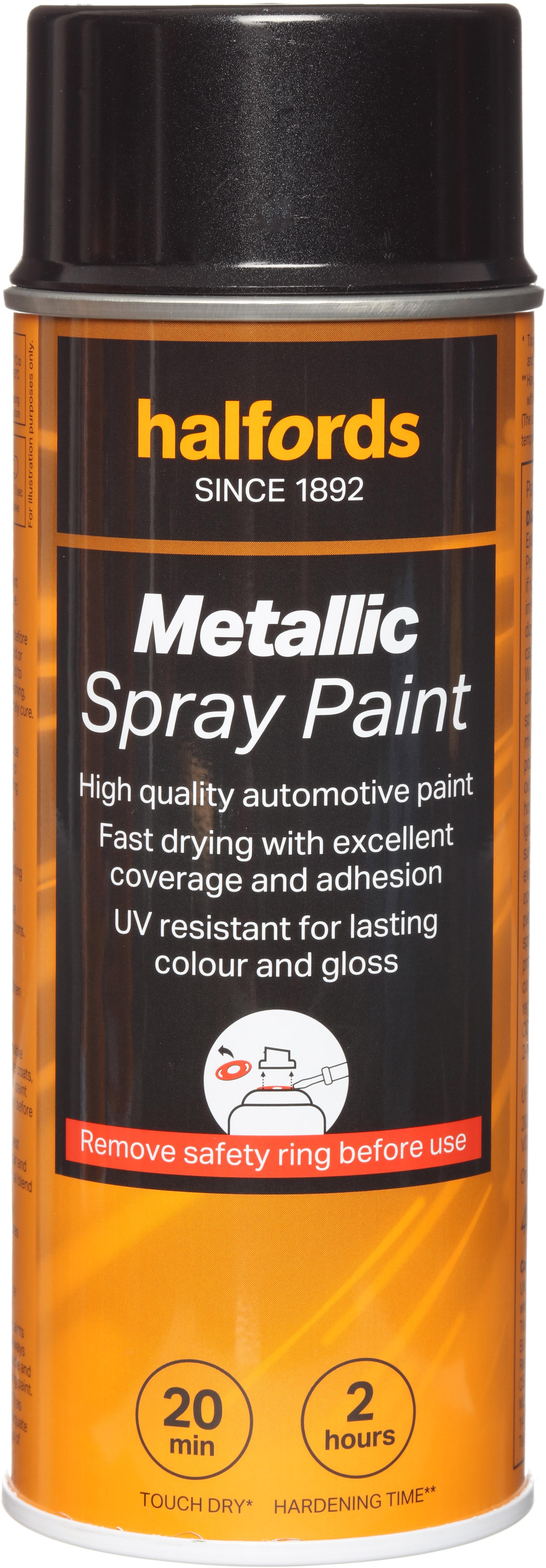 The Halfords Black Metallic Spray Paint is an acrylic-based spray paint, perfect for repairing damage and respraying car panels. It can also be used on aluminium, steel, wood, stone, and most plastics with an appropriate primer.