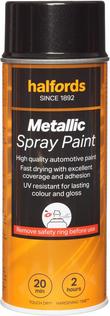 The Halfords Black Metallic Spray Paint is an acrylic-based spray paint, perfect for repairing damage and respraying car panels. It can also be used on aluminium, steel, wood, stone, and most plastics with an appropriate primer.