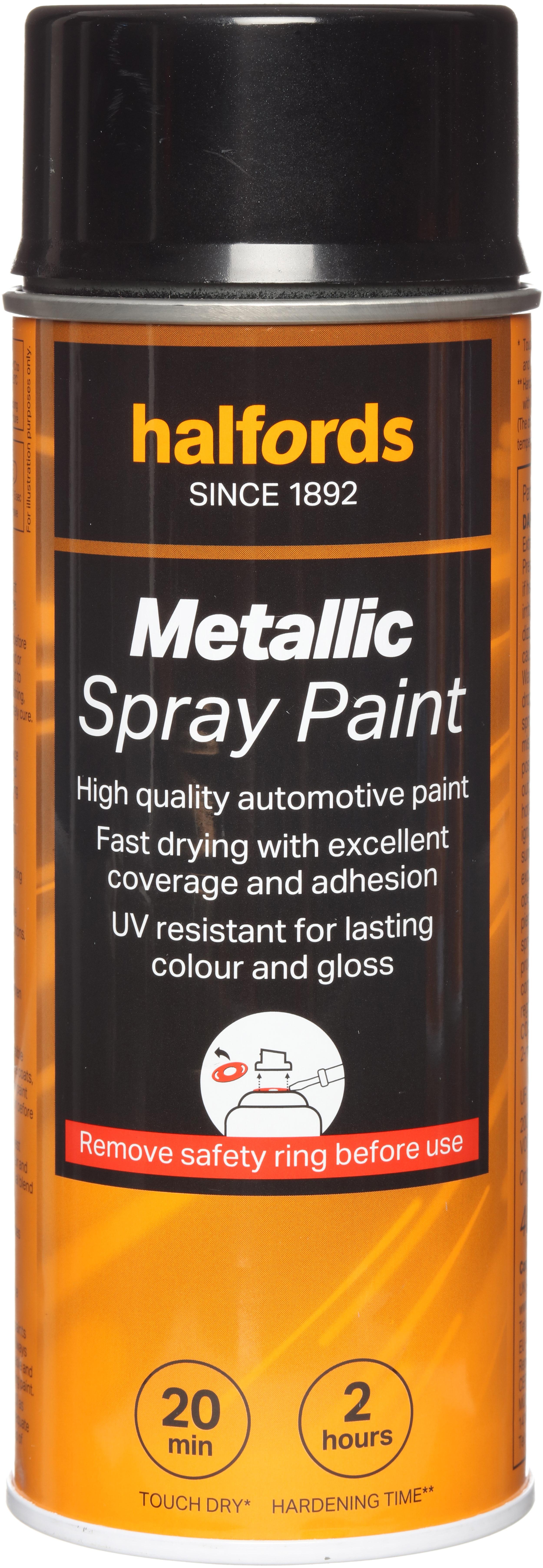 The Halfords Black Metallic Spray Paint is an acrylic-based spray paint, perfect for repairing damage and respraying car panels. It can also be used on aluminium, steel, wood, stone, and most plastics with an appropriate primer.