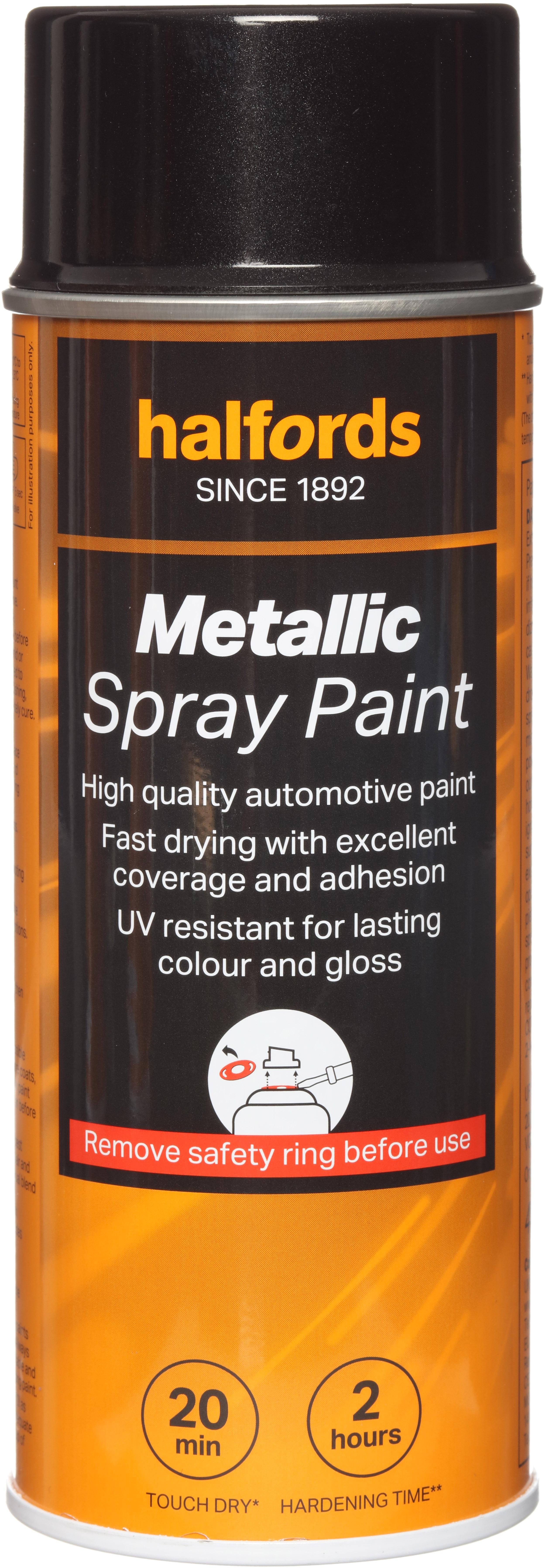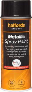 The Halfords Black Metallic Spray Paint is an acrylic-based spray paint, perfect for repairing damage and respraying car panels. It can also be used on aluminium, steel, wood, stone, and most plastics with an appropriate primer.