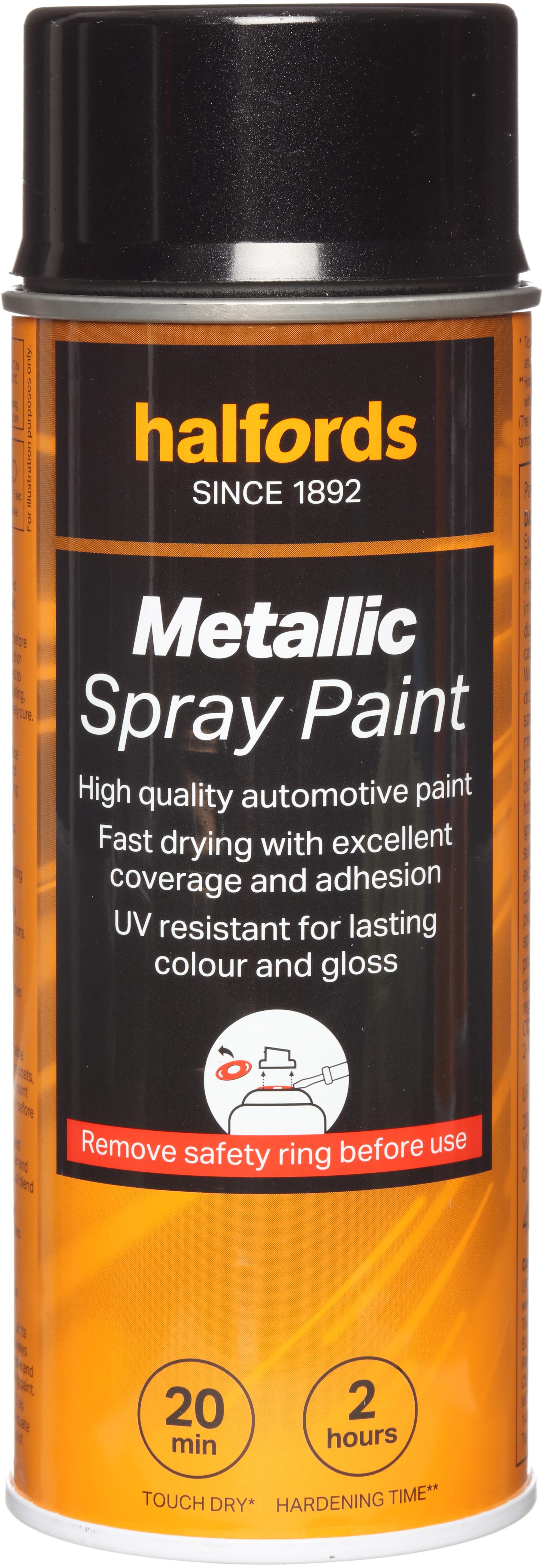 The Halfords Black Metallic Spray Paint is an acrylic-based spray paint, perfect for repairing damage and respraying car panels. It can also be used on aluminium, steel, wood, stone, and most plastics with an appropriate primer.