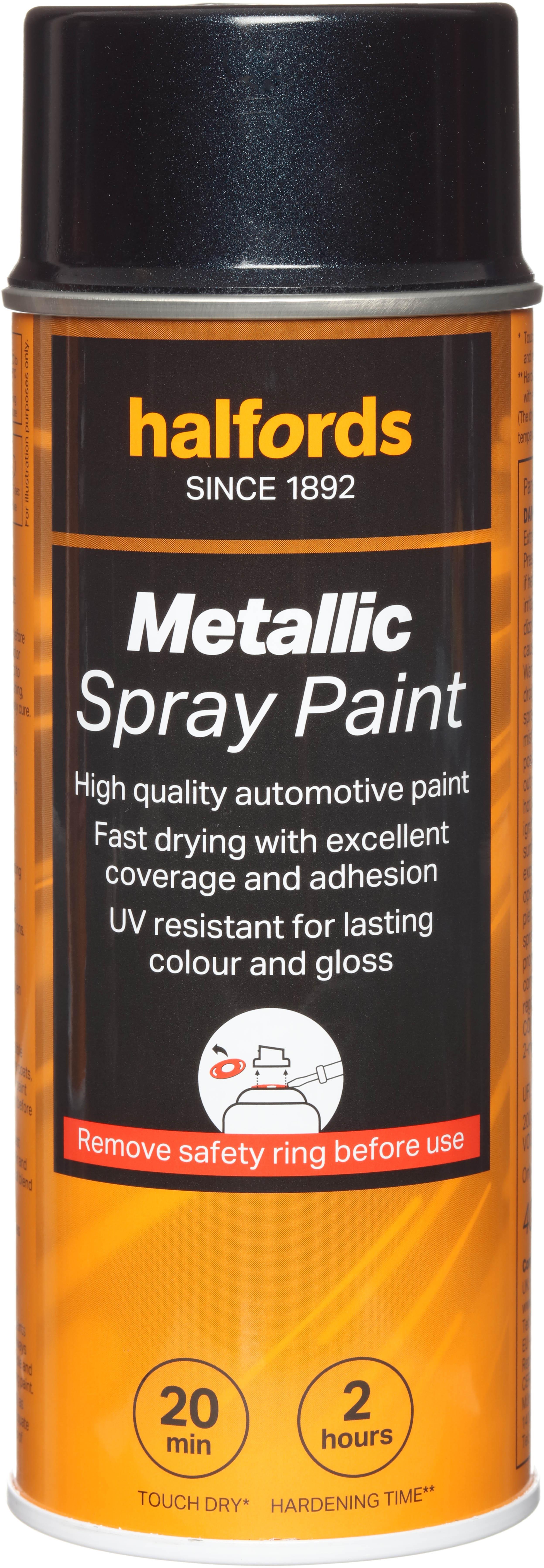 The Halfords Blue Metallic Spray Paint is an automotive-grade spray paint. It’s acrylic-based, and can be used on almost all vehicle finishes as well as steel, aluminium, most plastics, wood & stone.