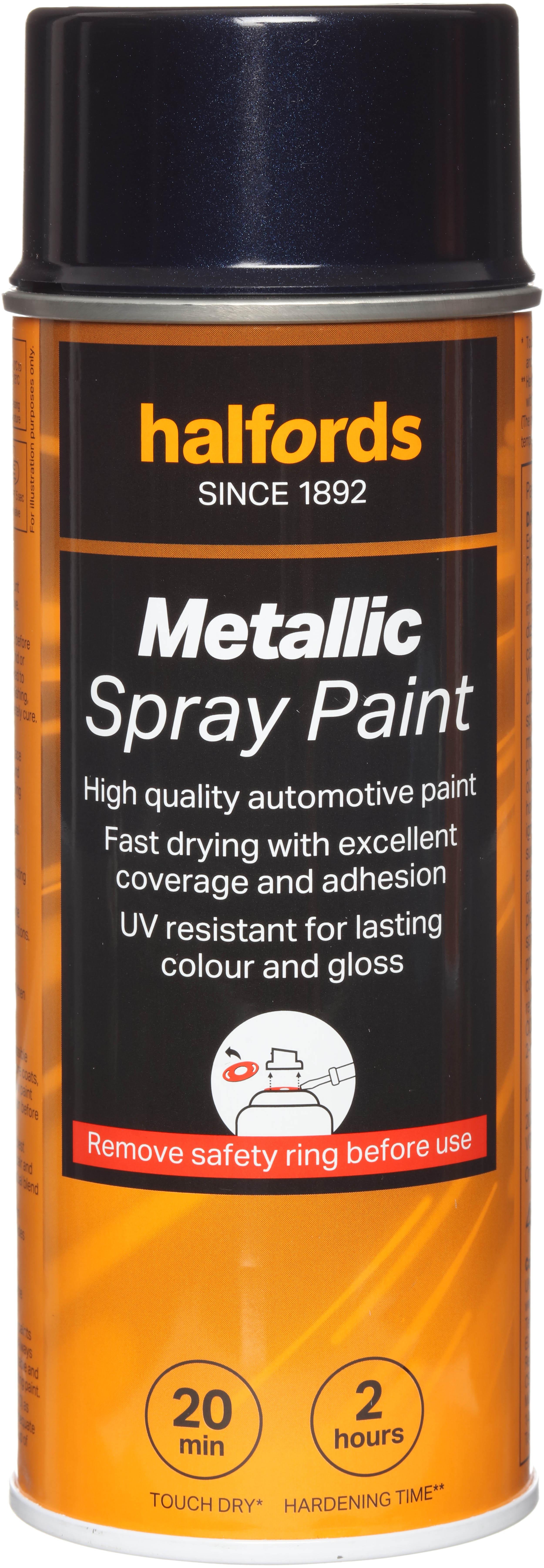 The Halfords Blue Metallic Spray Paint is an automotive-grade spray paint. It’s acrylic-based, and can be used on almost all vehicle finishes as well as steel, aluminium, most plastics, wood & stone.