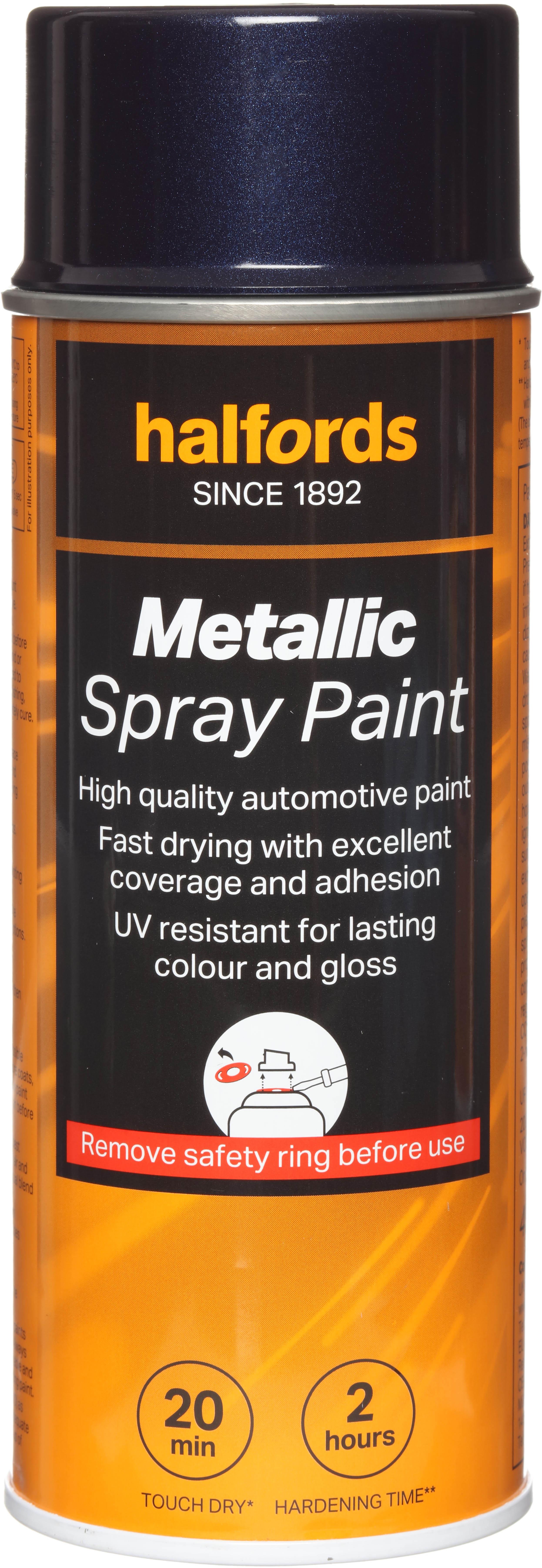 The Halfords Blue Metallic Spray Paint is an automotive-grade spray paint. It’s acrylic-based, and can be used on almost all vehicle finishes as well as steel, aluminium, most plastics, wood & stone.