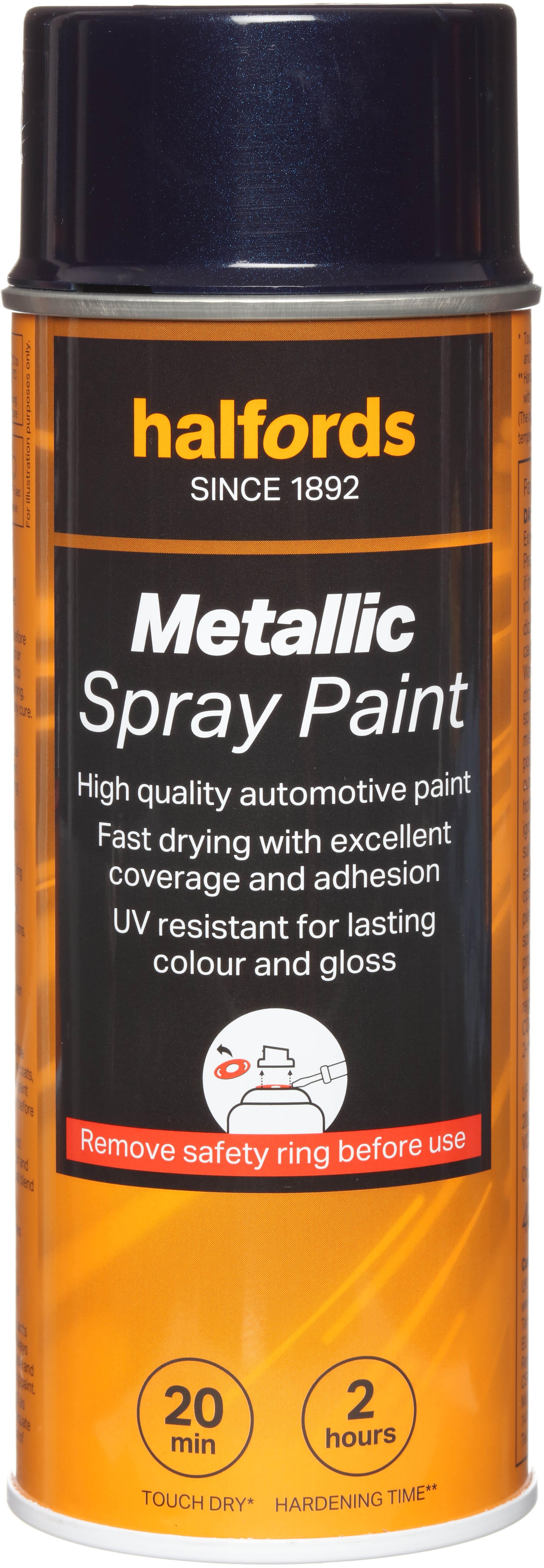 The Halfords Blue Metallic Spray Paint is an automotive-grade spray paint. It’s acrylic-based, and can be used on almost all vehicle finishes as well as steel, aluminium, most plastics, wood & stone.