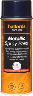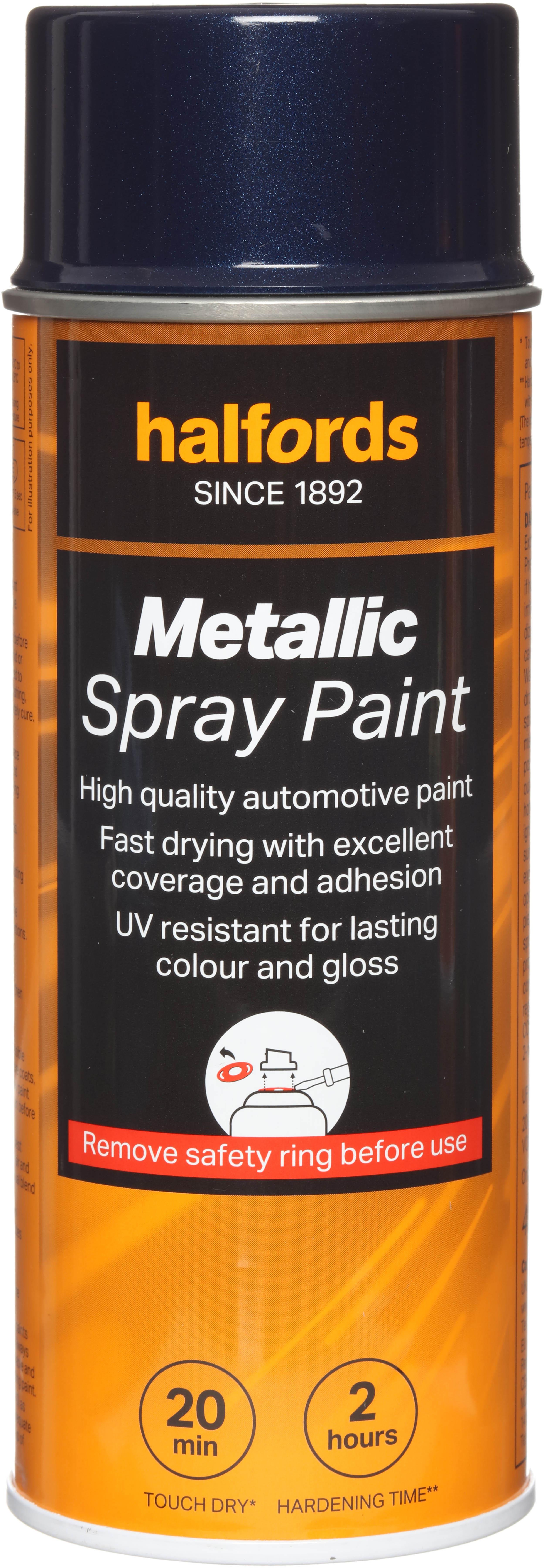 The Halfords Blue Metallic Spray Paint is an automotive-grade spray paint. It’s acrylic-based, and can be used on almost all vehicle finishes as well as steel, aluminium, most plastics, wood & stone.