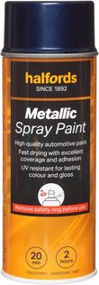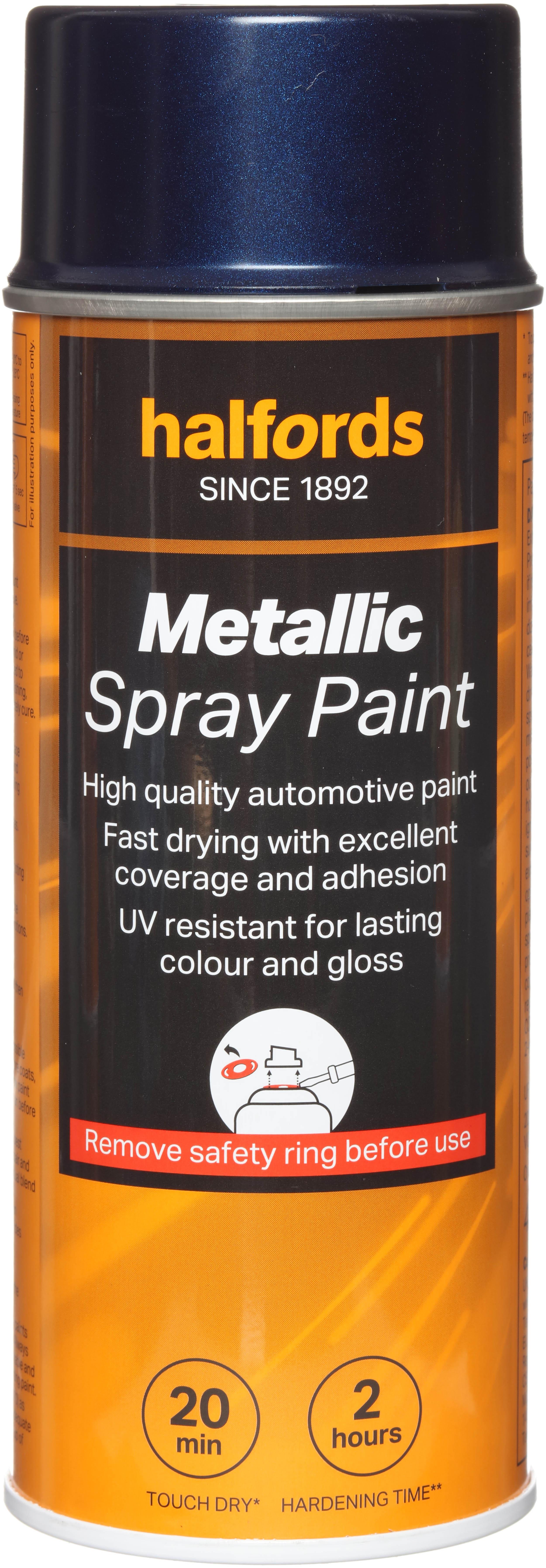 The Halfords Blue Metallic Spray Paint is an automotive-grade spray paint. It’s acrylic-based, and can be used on almost all vehicle finishes as well as steel, aluminium, most plastics, wood & stone.